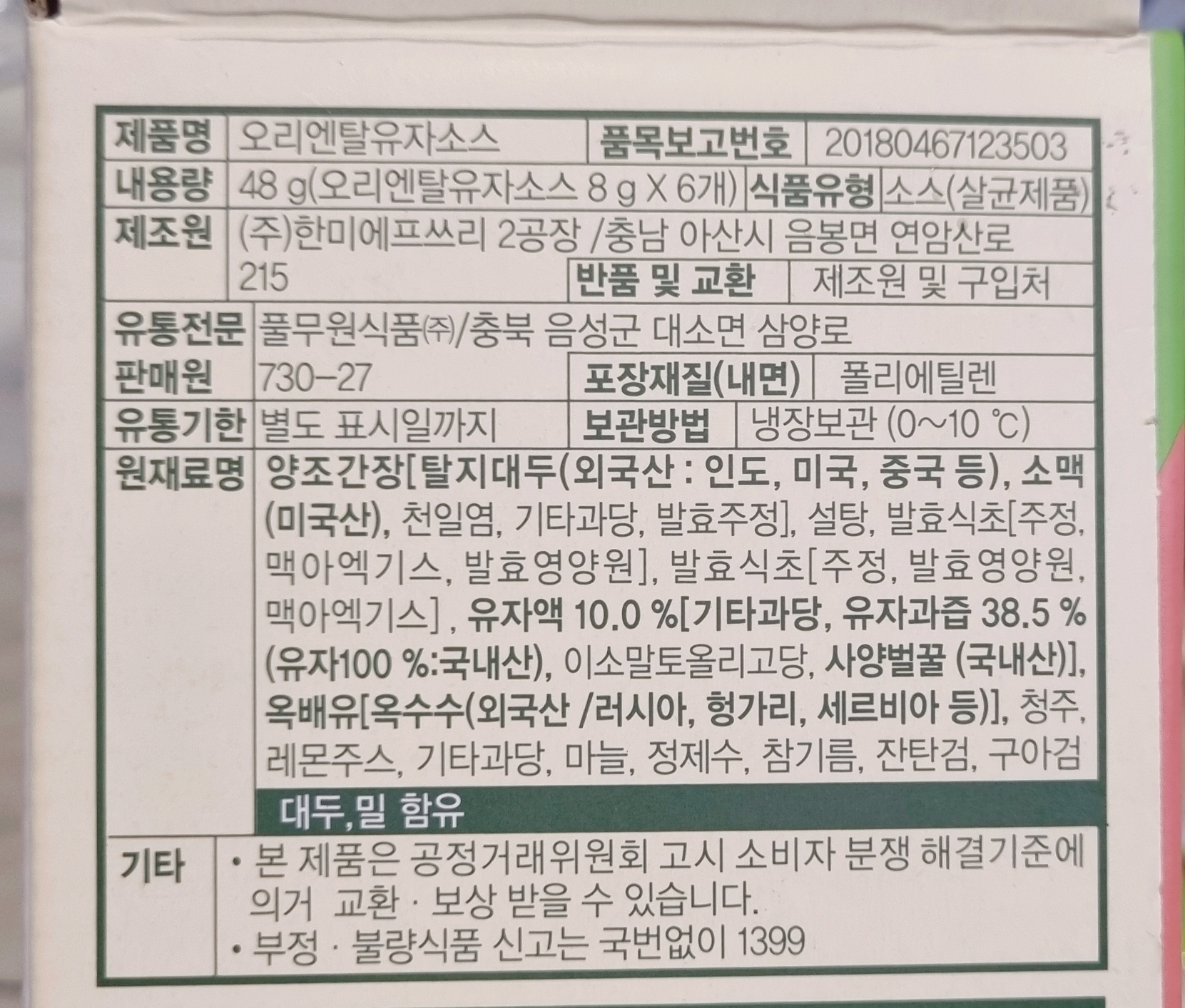 두부 하나에 오리엔탈유자소스 하나씩 들어있다는 점이다 ~