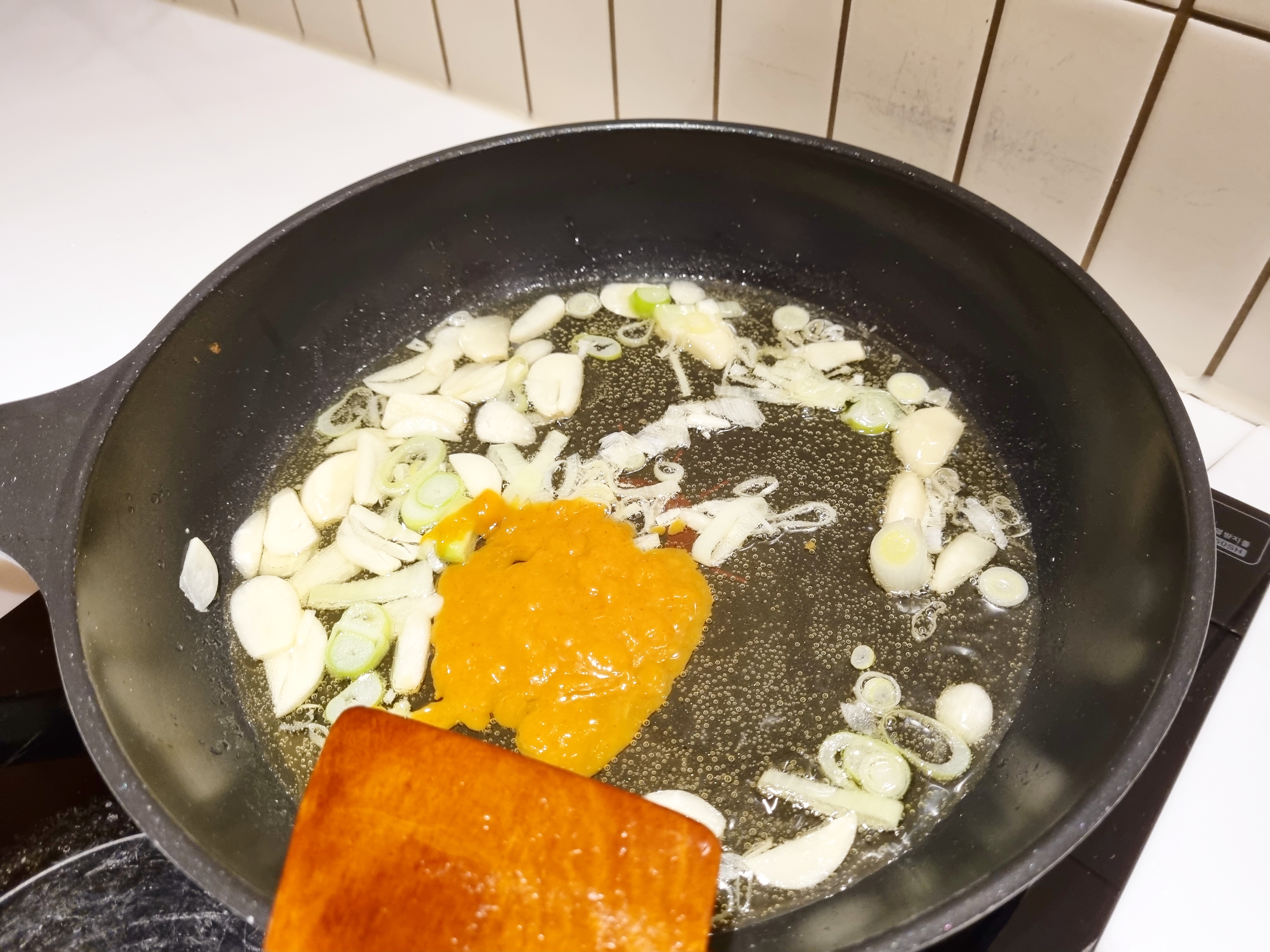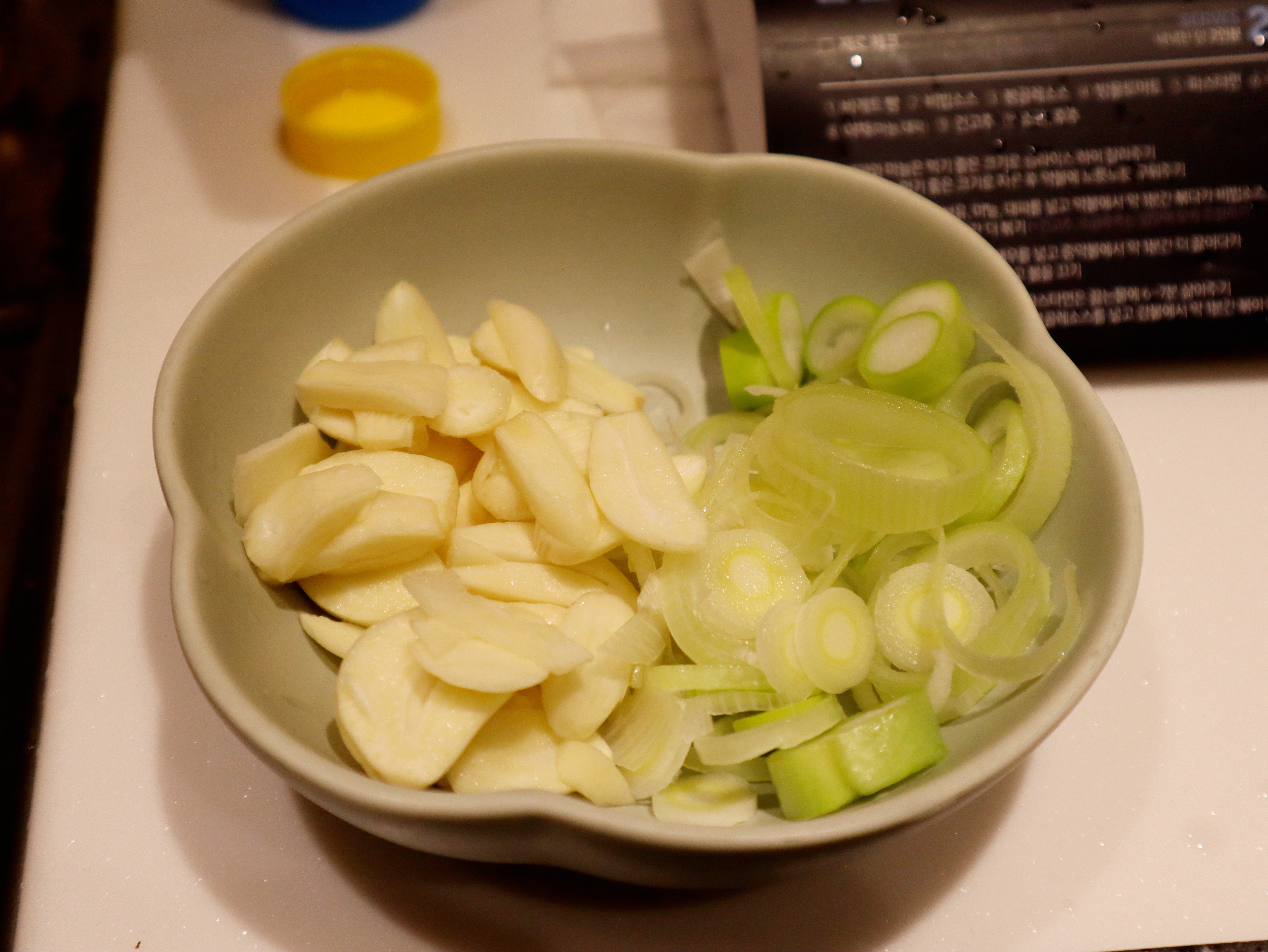 올리브유에 마늘과 파를 넣고 볶아주다가