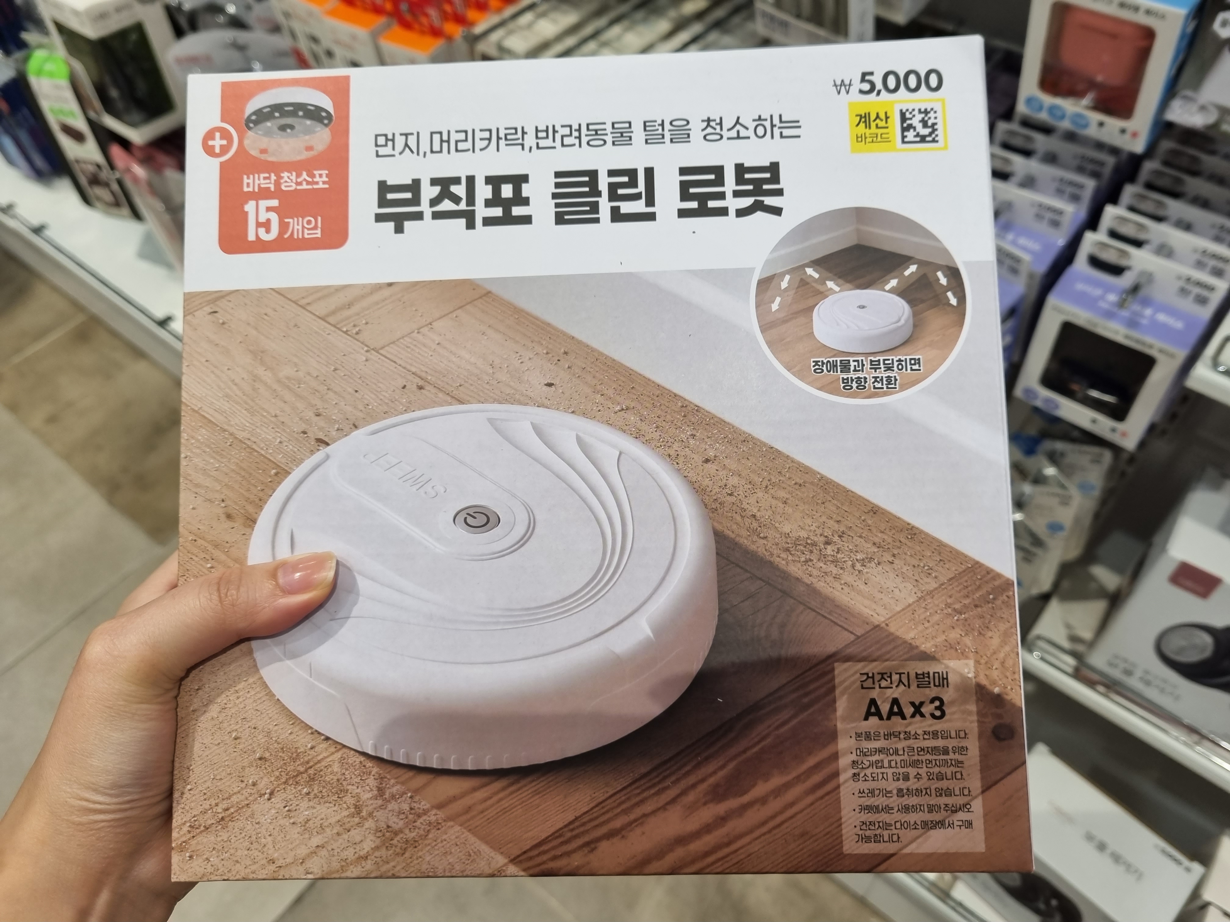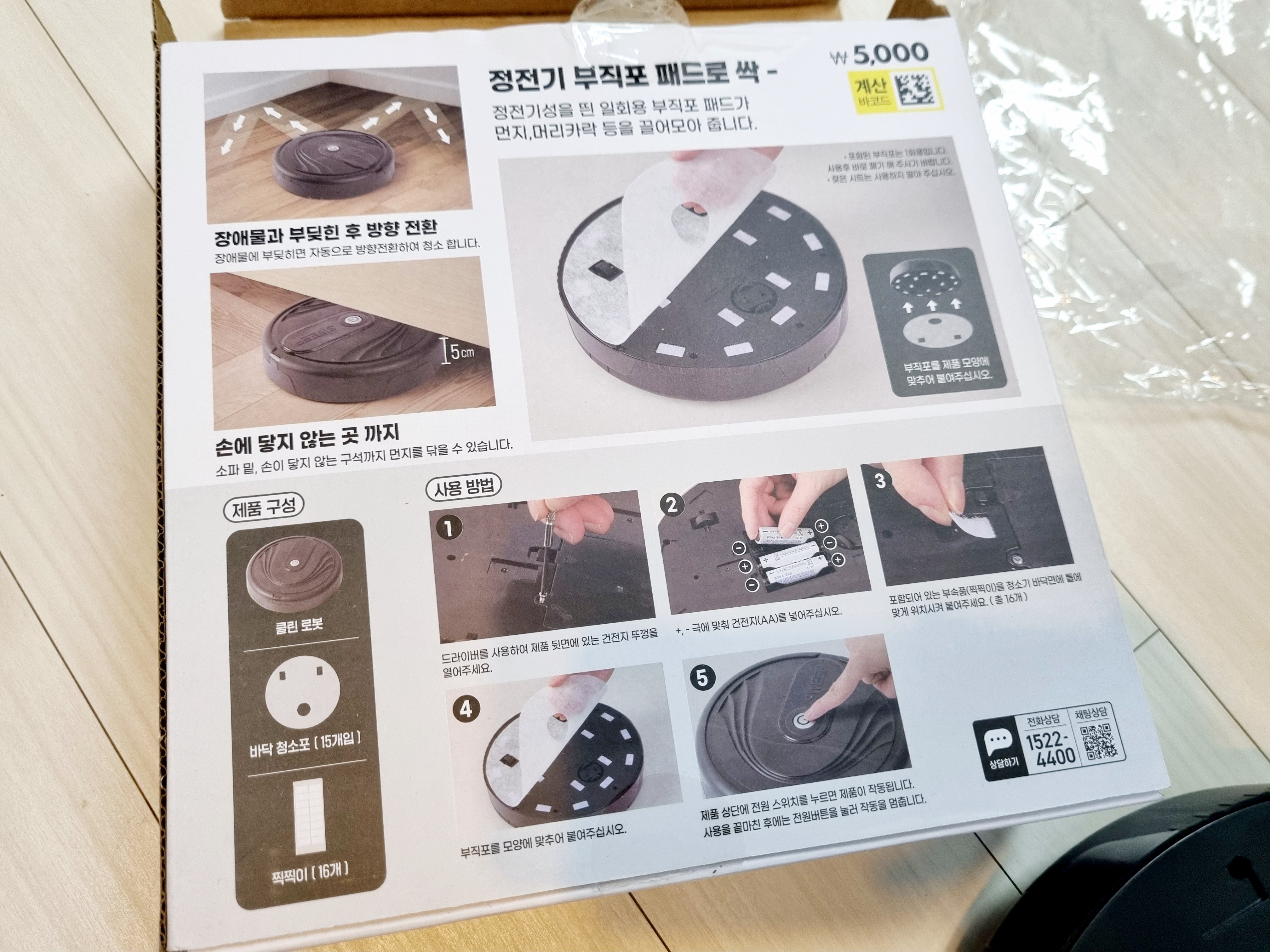이 로봇청소기는 먼지를 빨아들이는게 아닌 부직포의 정전기로 먼지를 붙이는 원리에요