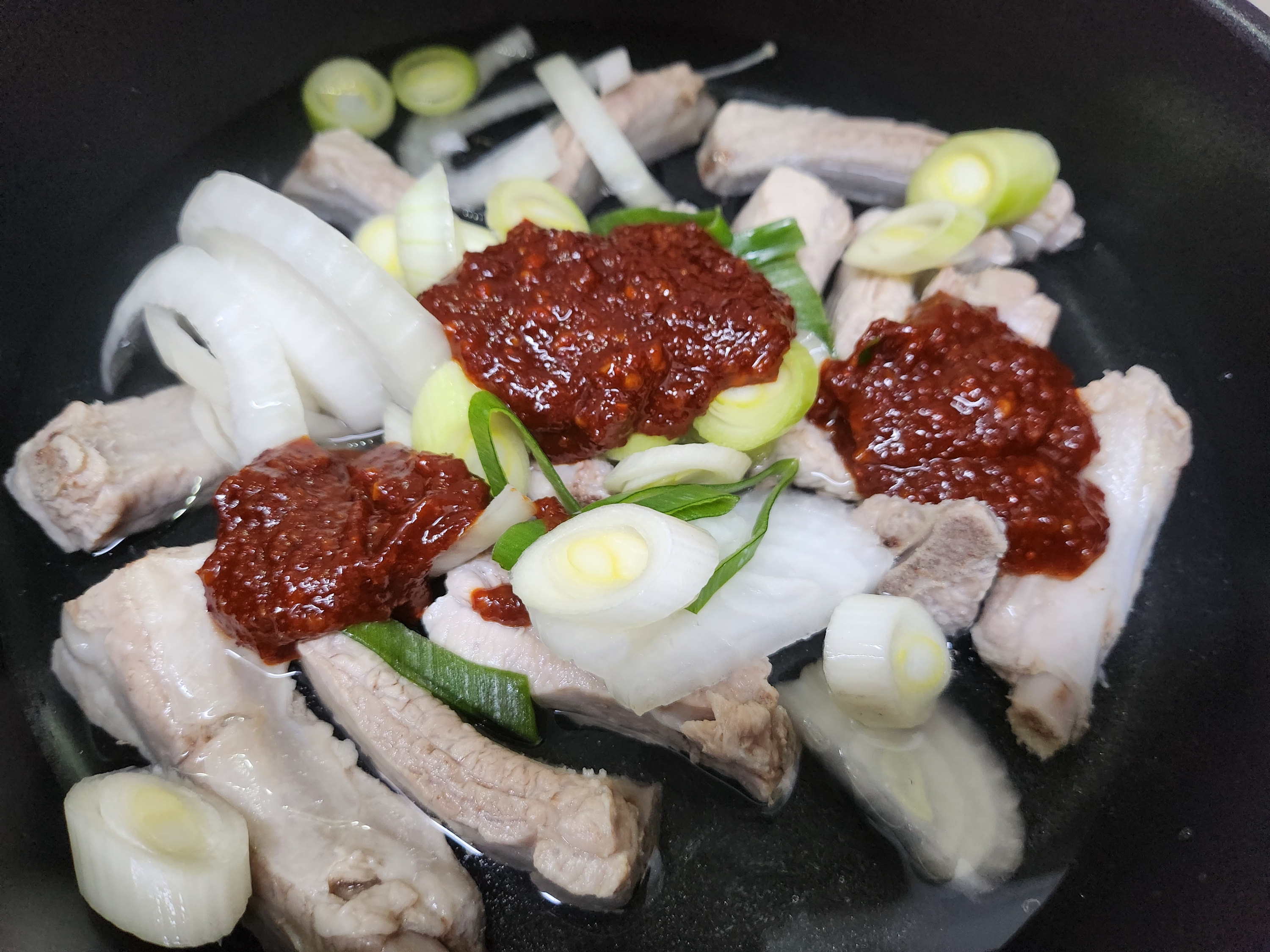 물은 등갈비가 살짝 잠길 정도로만 넣어주었고