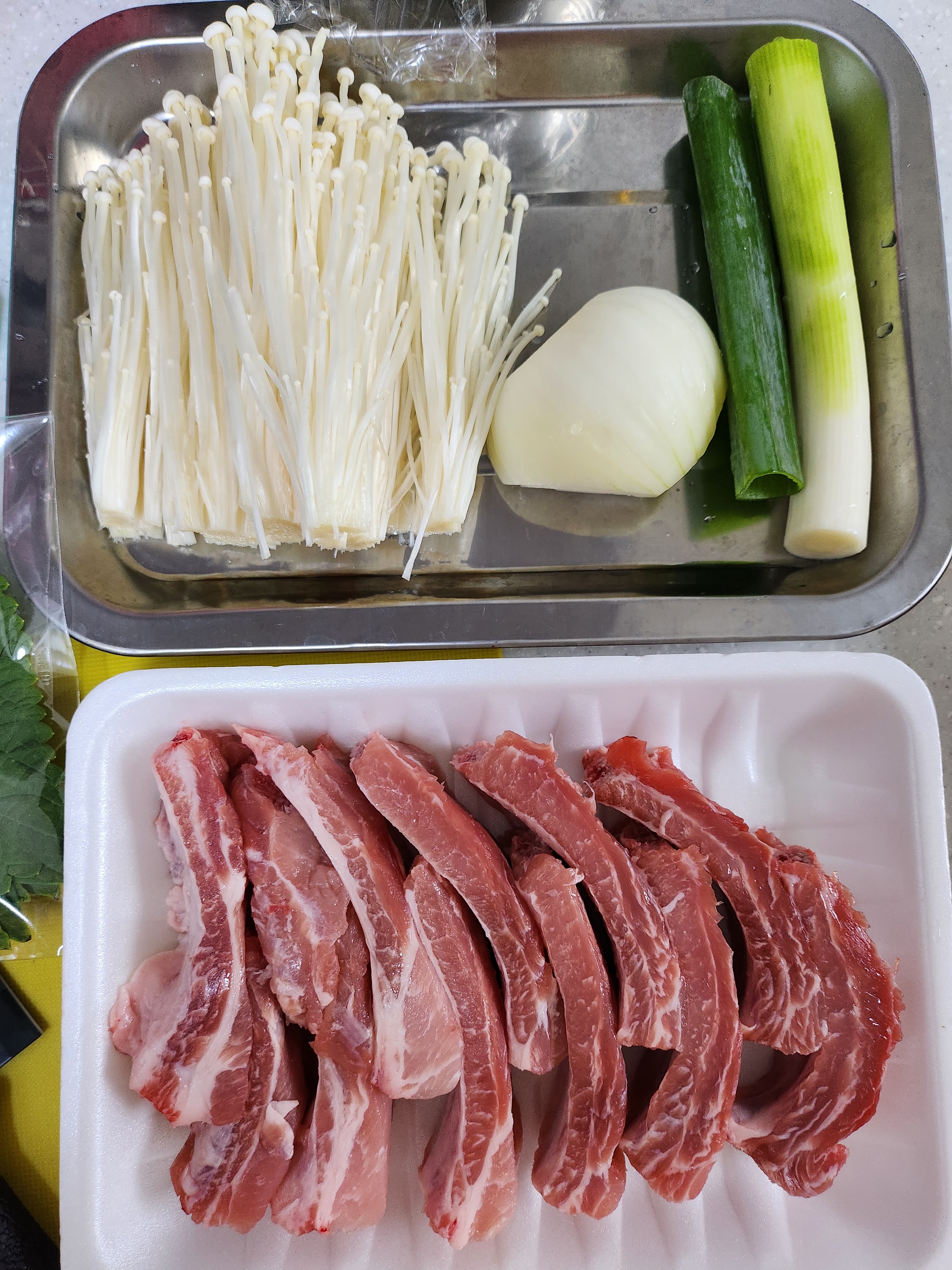 새로운 냄비에 등갈비를 넣고 썰어놓은