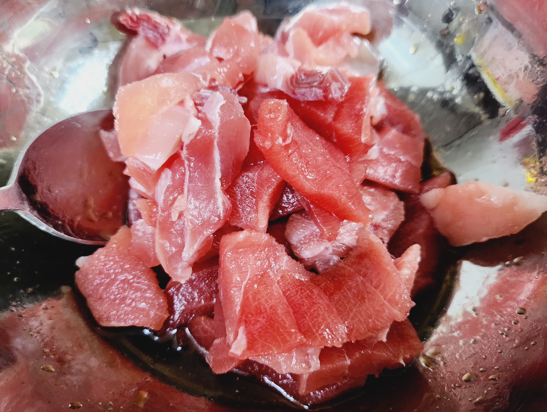 그리고 보관해 놓은 남은 참치를 깍뚝썰어 준 후에