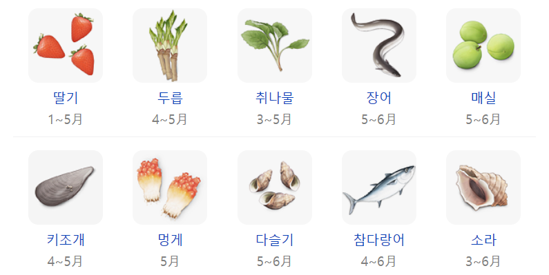 이번에는 5월 제철 음식에 대해서 알아봤는데요.