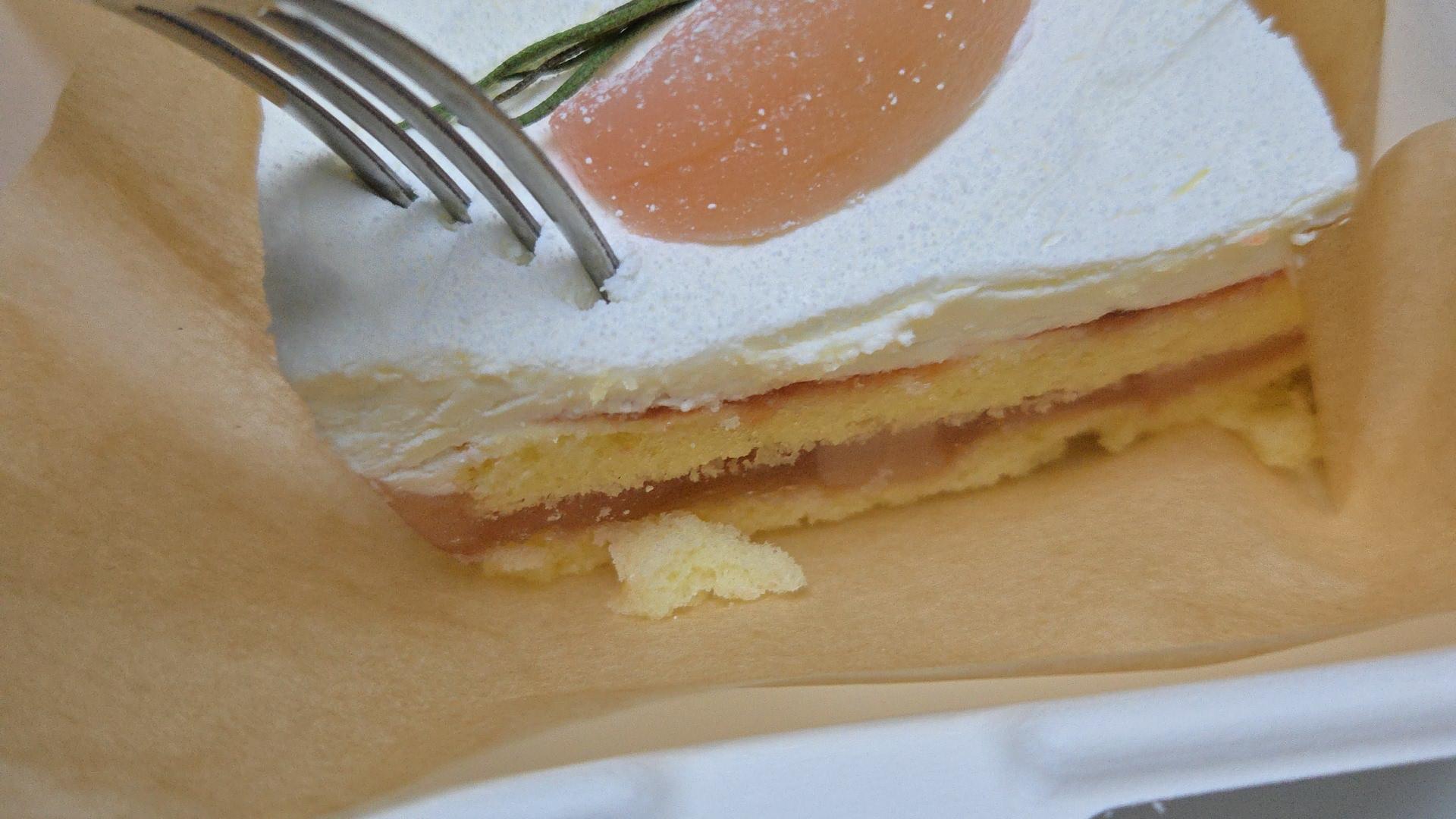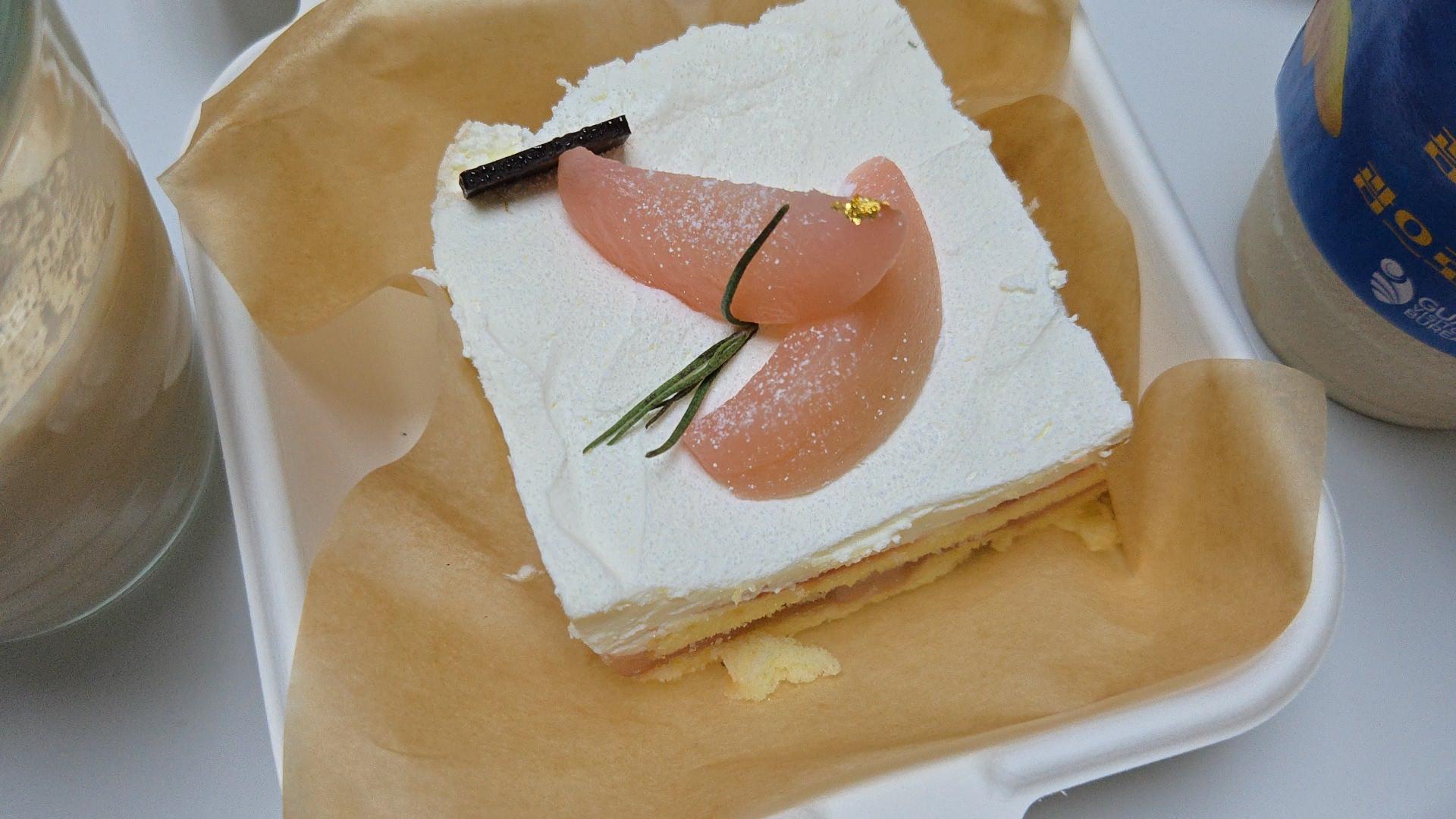향긋한 복숭아 콤포트와 복숭아 생크림이 어우러져 가볍과 산뜻하게 즐길 수 있는 케이크
