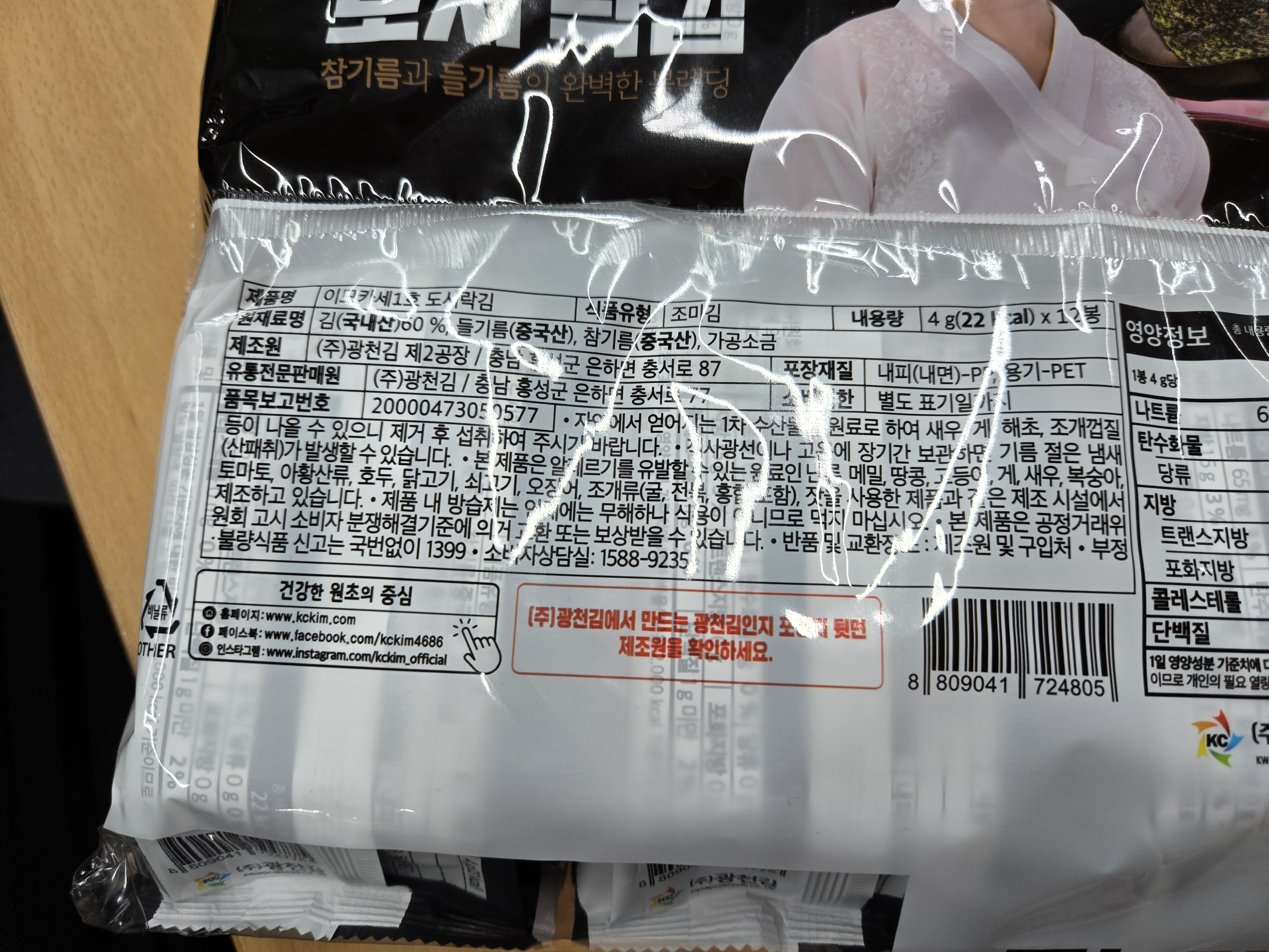바삭한 김이라서 안주나 간식으로 추천하고 싶어요.
