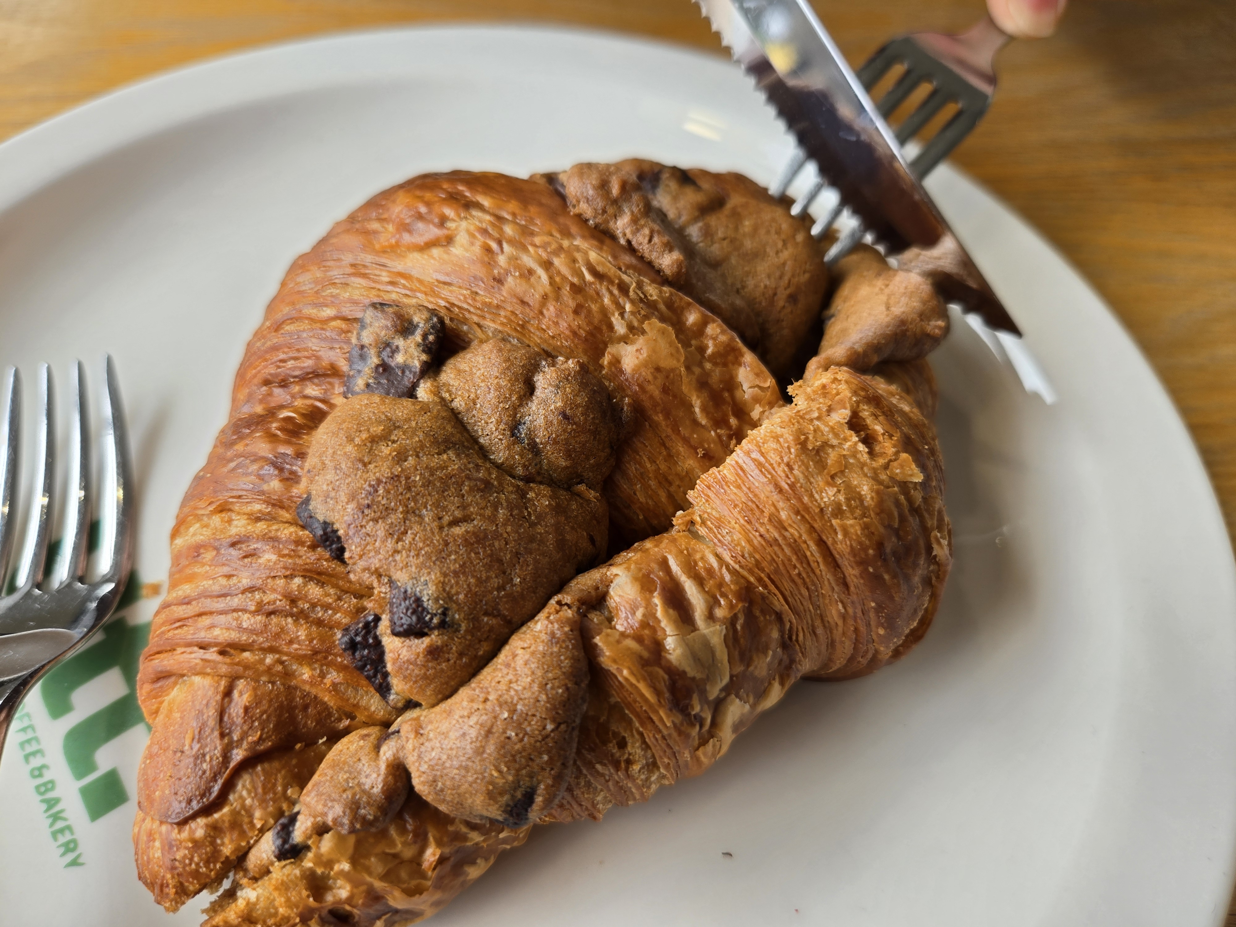 에그마요크로아상 샌드위치는 버터가 듬뿍 들어서 부드럽고 고소함 가득한 크루와상에 애그샐러드와 신선한 루꼴라가 들어가서 완전 제 스타일이었어요. 나이프 제공해주셔서 반으로 잘라서 짝꿍이랑 같이 먹었거든요. 둘다 너무 맛있게 먹었어요.