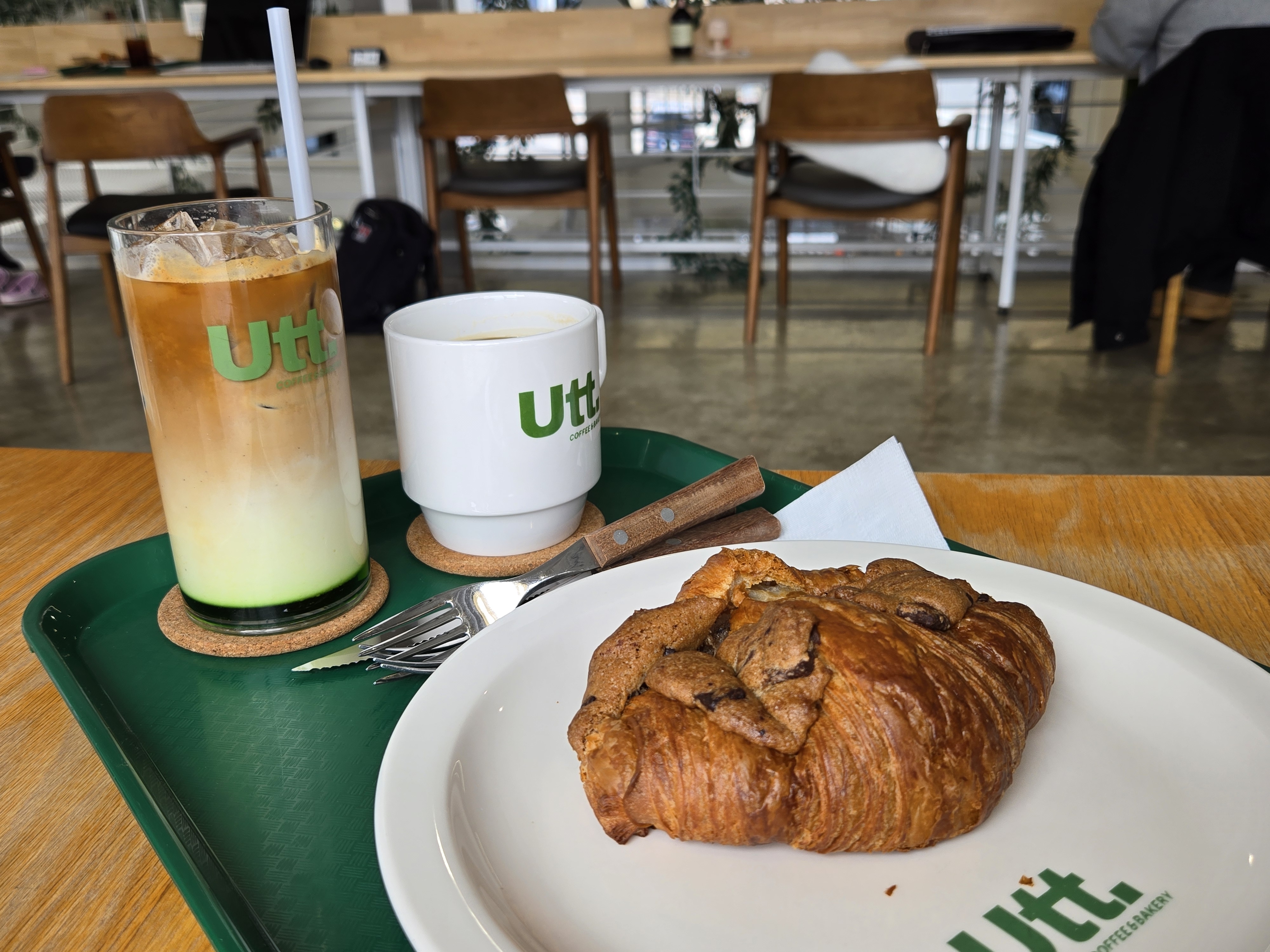 제가 주문했던 언티드라떼와 초코쿠키크루키!