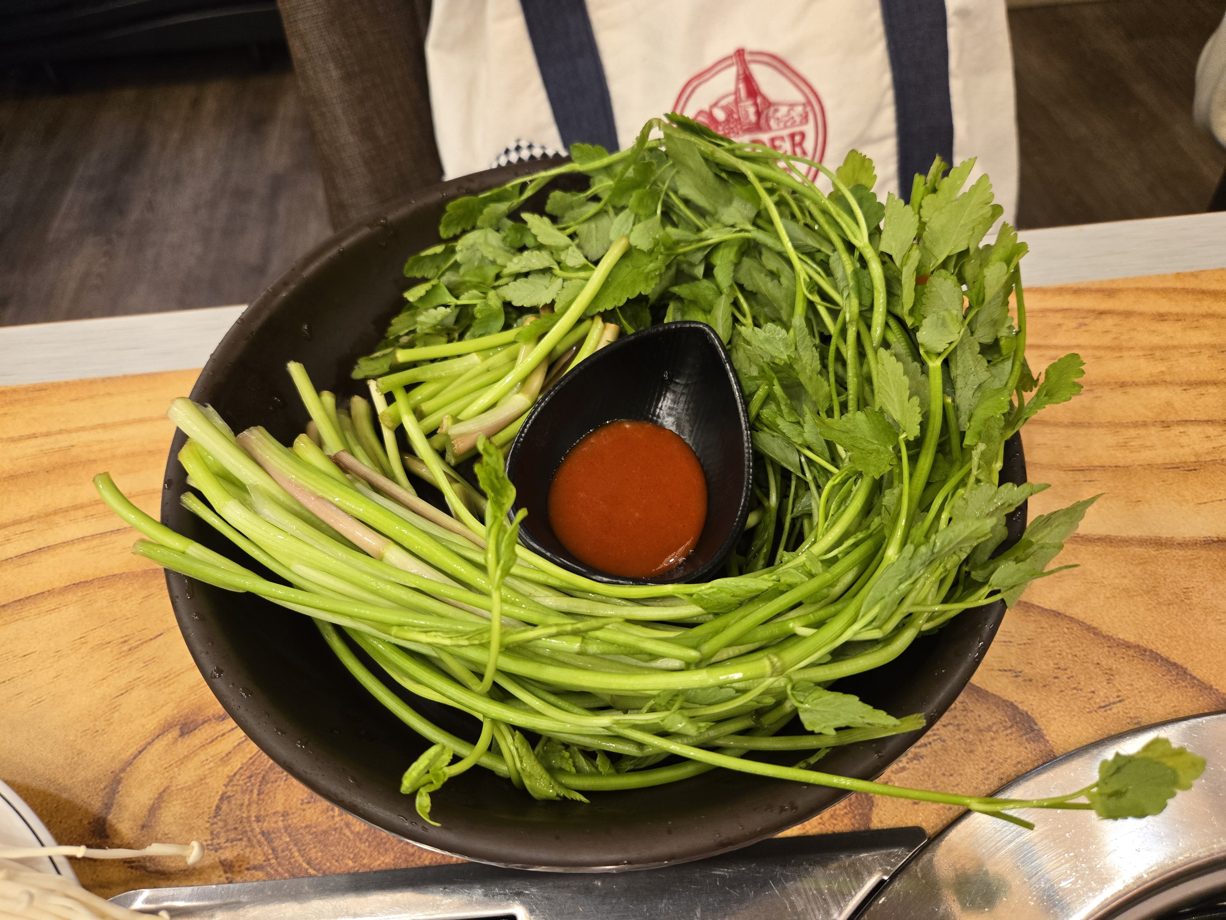지금 시기에만 먹을 수 있는 청도 한재미나리를 한접시에 8천원에 드실 수 있는데요. 미나리 삼겹살을 너무 좋아해서 한 접시를 주문해봤어요. 생으로도 먹고 구워서 고기와도 먹으니까 향이 더해져서 고기가 훨씬 맛있어지는 것 같았어요.
