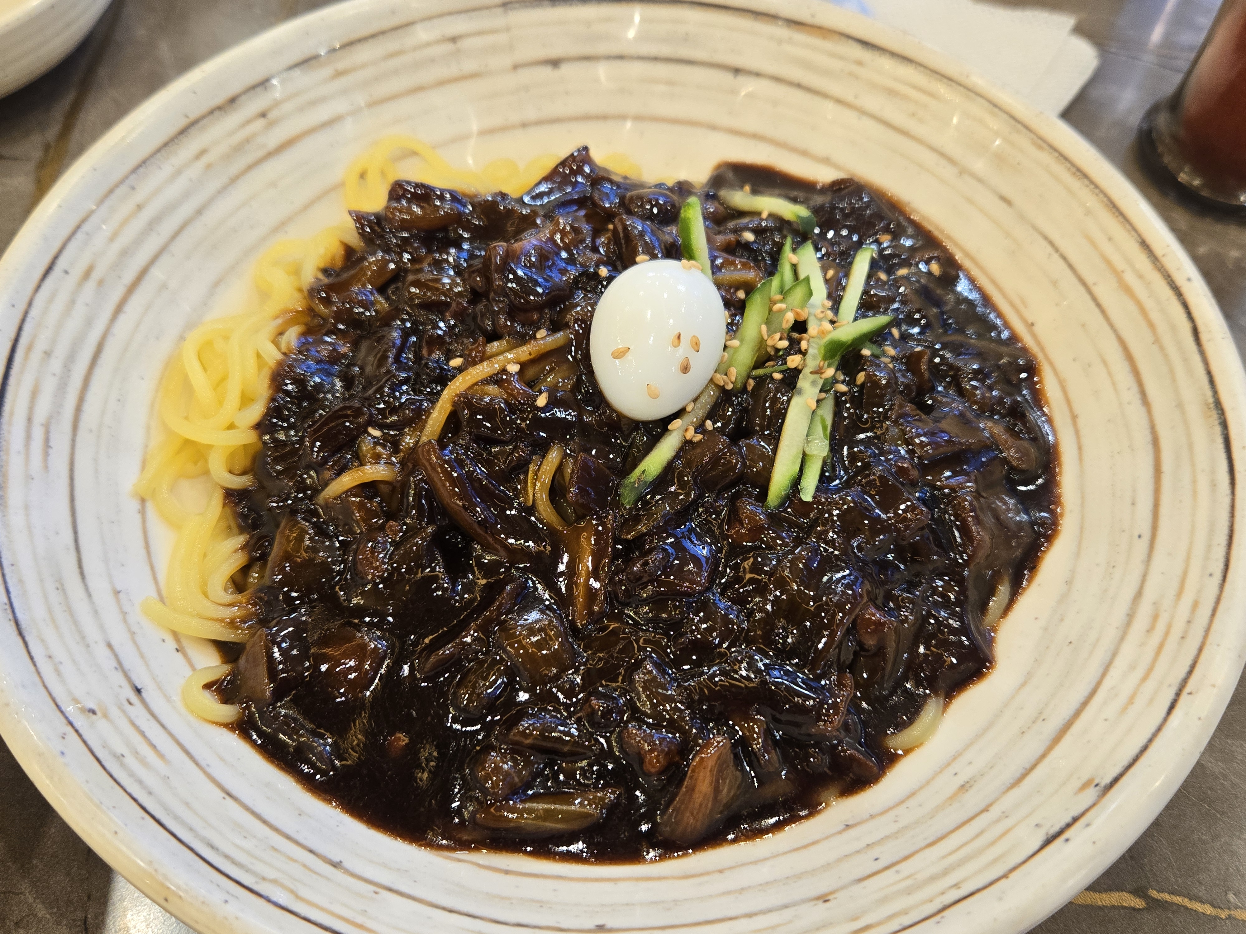 짜장면의 면은 쫄깃하고 소스는 적당히 달콤하며 무난한 맛이었어요. 특별히 튀는 맛은 아니지만, 기본에 충실한 짜장면이었어요.