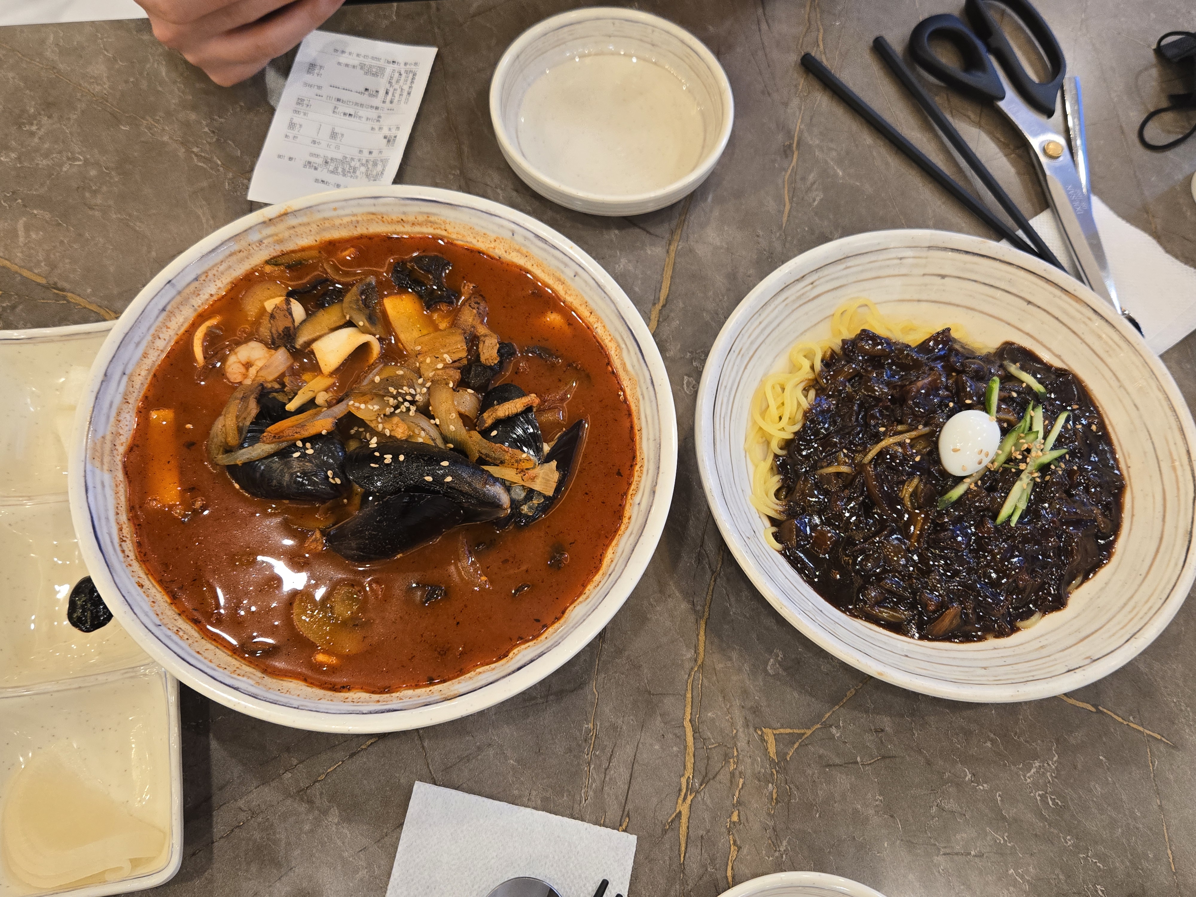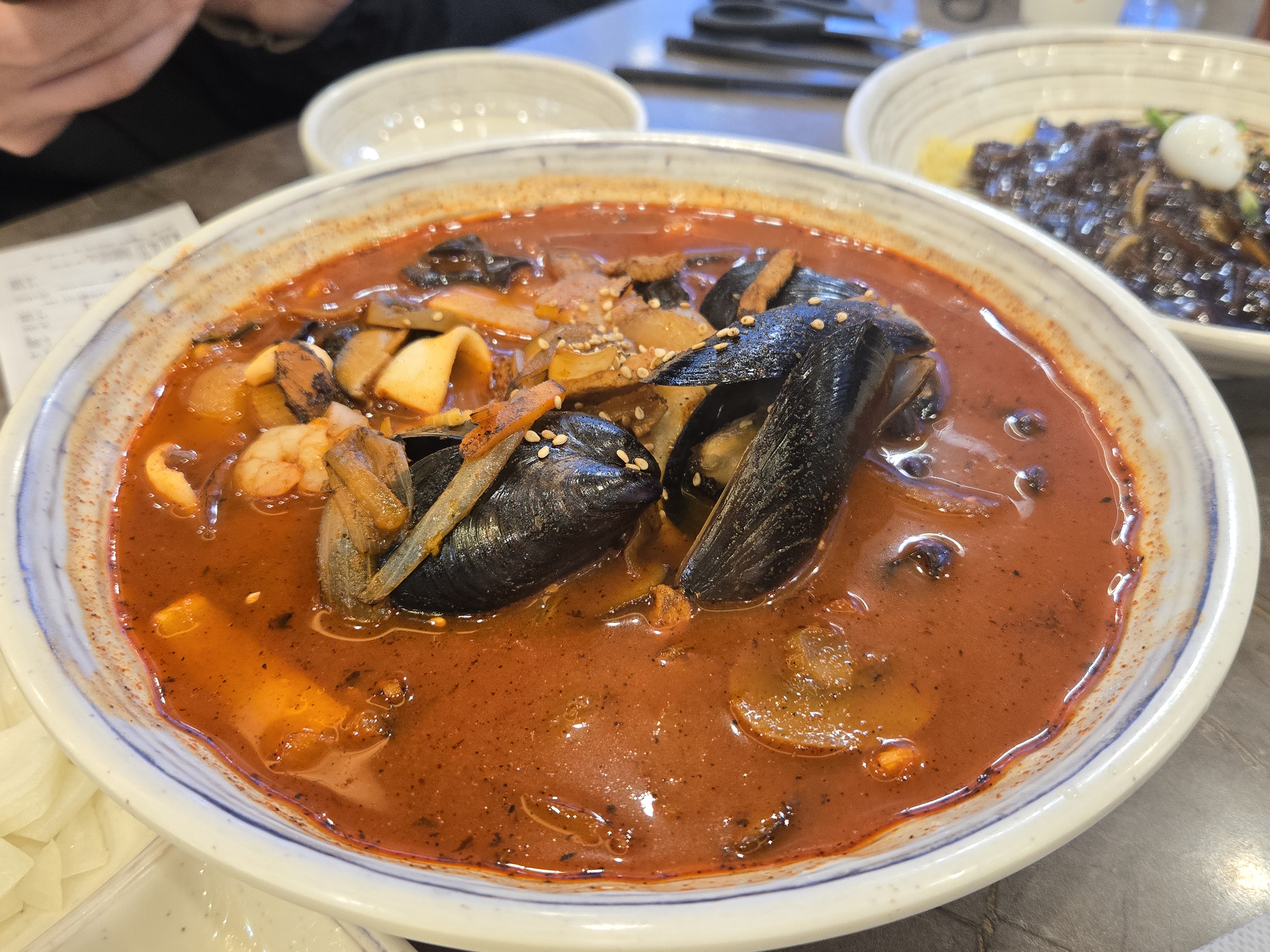 군포 송정지구 감성반점의 짬뽕은 첫 숟가락을 뜨자마자 강한 불맛이 느껴졌고, 야채 육수 베이스라 국물이 깔끔하면서도 깊은 맛이 있었어요. 면발도 쫄깃해서 국물과 잘 어우러졌어요.