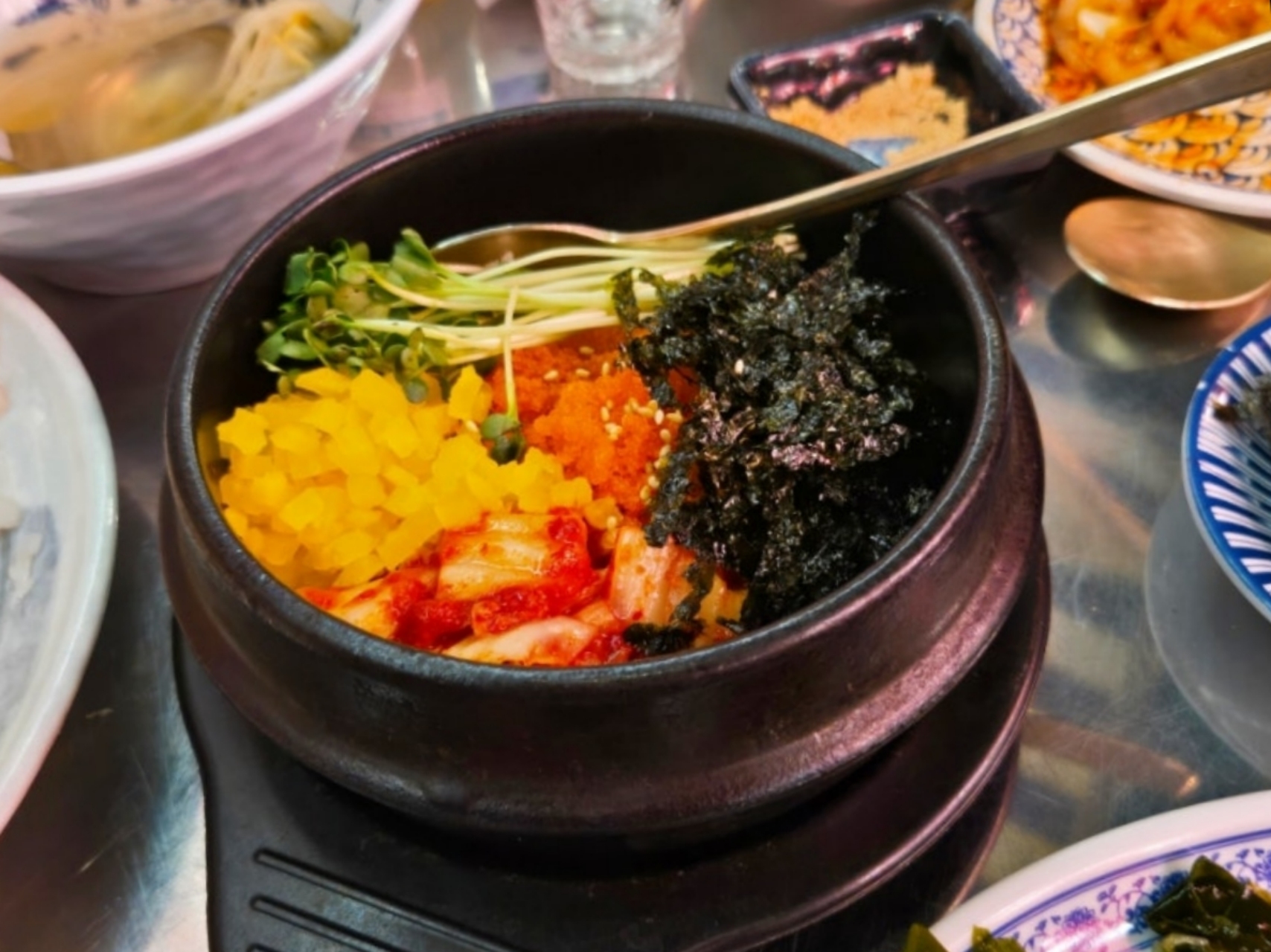 막회와 함께 알밥을 주문했는데, 단무지, 김치, 날치알이 듬뿍 올라가 있어 간단한 안주로도 좋았어요. 가성비가 뛰어나더라고요. 생각보다 술안주와도 잘 어울려서 꼭 드셔보세요.