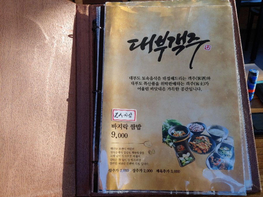 주변을 쭉 둘러보니 많이 드시는 대표 메뉴로는 바지락 쌈밥, 해물파전, 바지락칼국수, 튀김이 있습니다.
