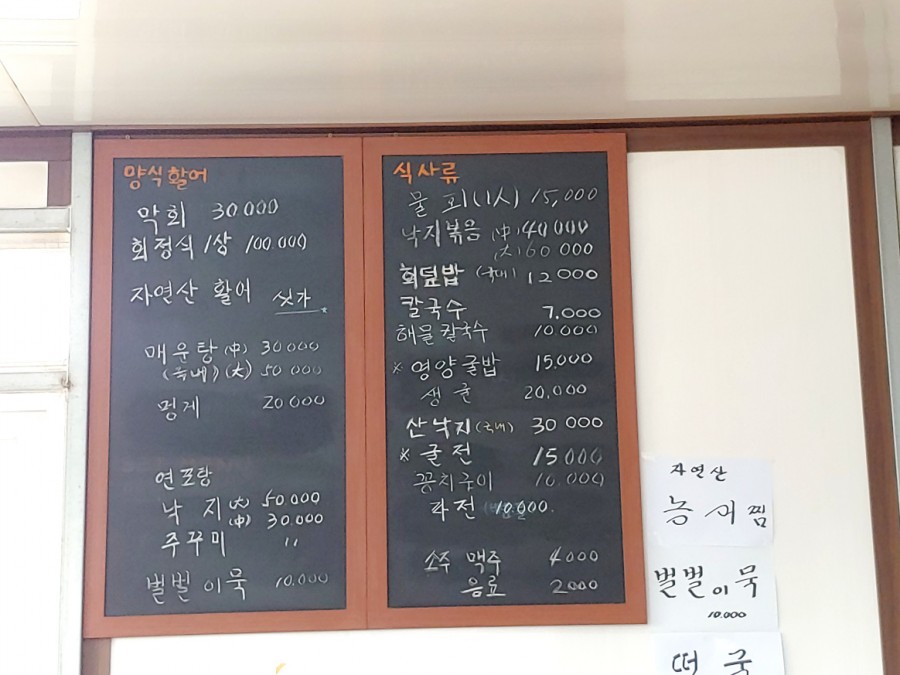 먹고 싶지만 모두 소주와 함께해야하는 음식들로 보여서 저희는 바지락 칼국수를 시켰습니다.