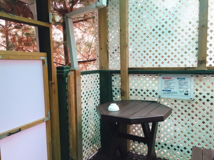 노천스파라 혹시나 다른 곳에서 보일까 싶지만 앞에는 산, 옆방과도 칸막이가 잘되어있어 걱정 안 하셔도 될 것 같습니다.