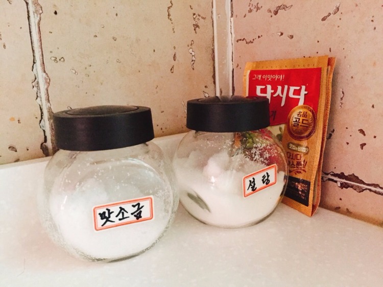 펜션에 가면 대부분 조미료는 따로 없던데, 여기서는 주방에서 간단한 조리를 할 수 있도록 소금, 설탕, 다시다 기본적인 조미료가 있었습니다.