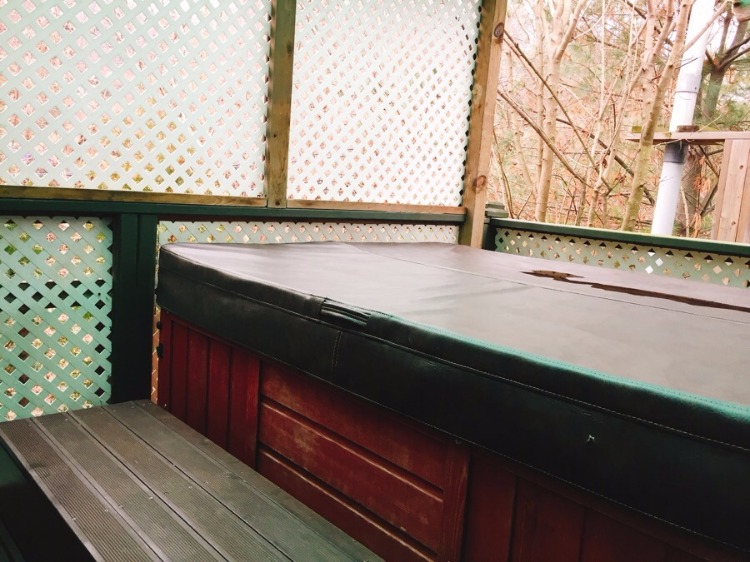 저 검은색 덮개를 열면 안에 따뜻한 물이 받아져 있는 스파 기계가 있습니다.