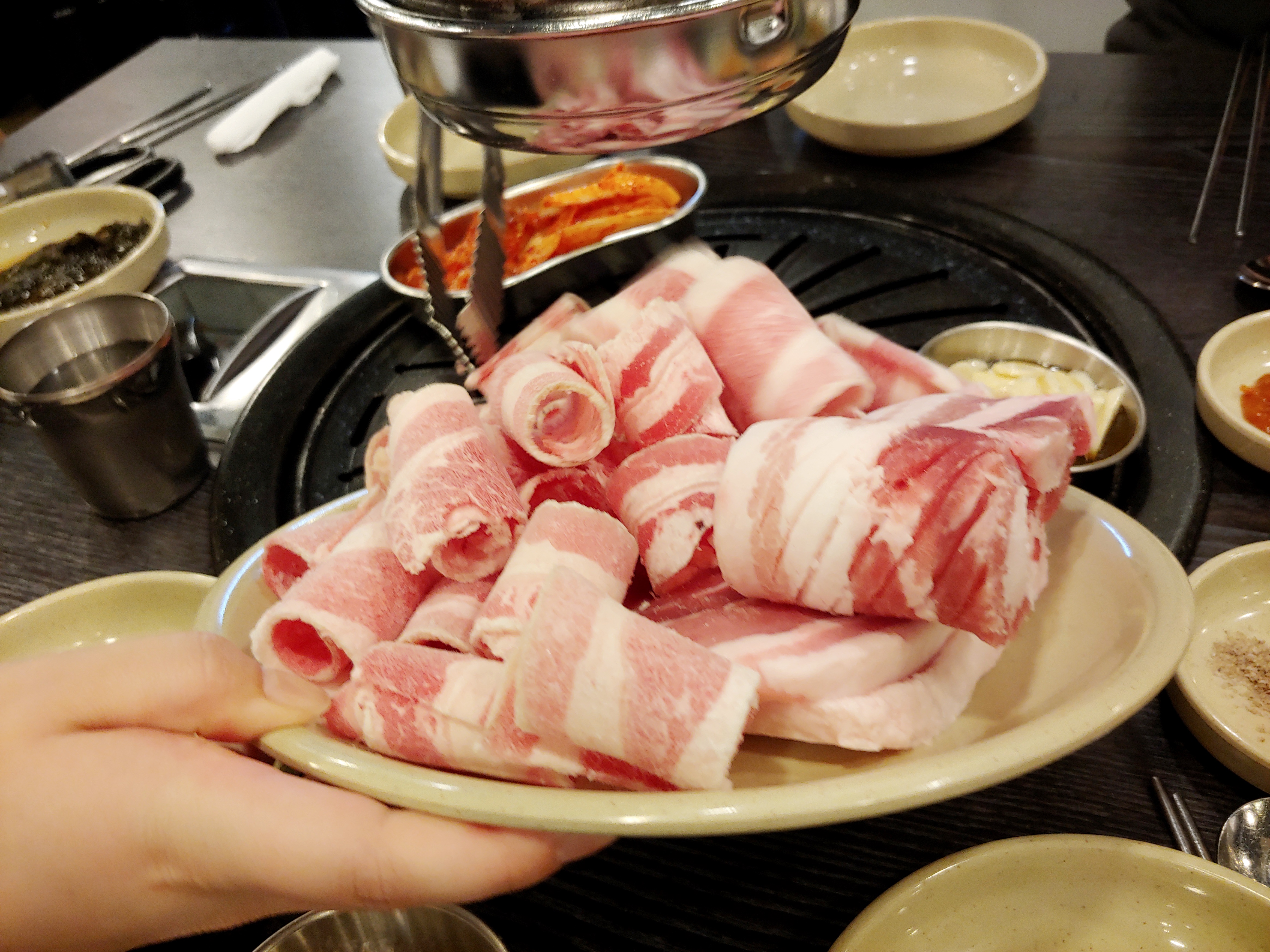 2. 양념이 없는 삼겹살, 우삼겹을 먼저 구워먹고