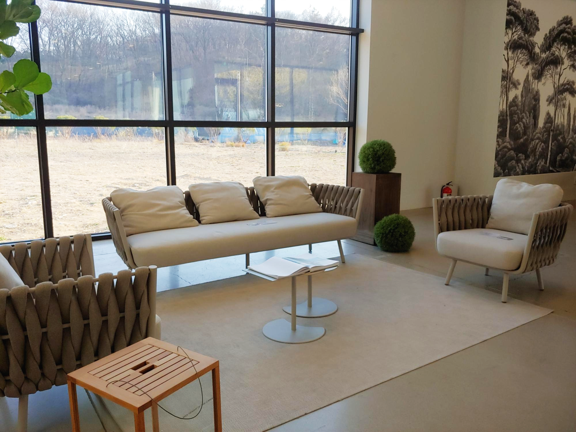 앞에 주차를 하고 입구로 들어가면 왼쪽에는 가구 쇼룸, 오른편(카페 반대편)에는 카페와 쇼룸이 있어요.