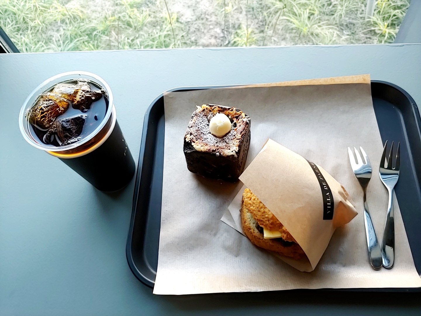 베이커리가 맛있다고 해서 빵 두개에 음료 하나를 주문했어요.