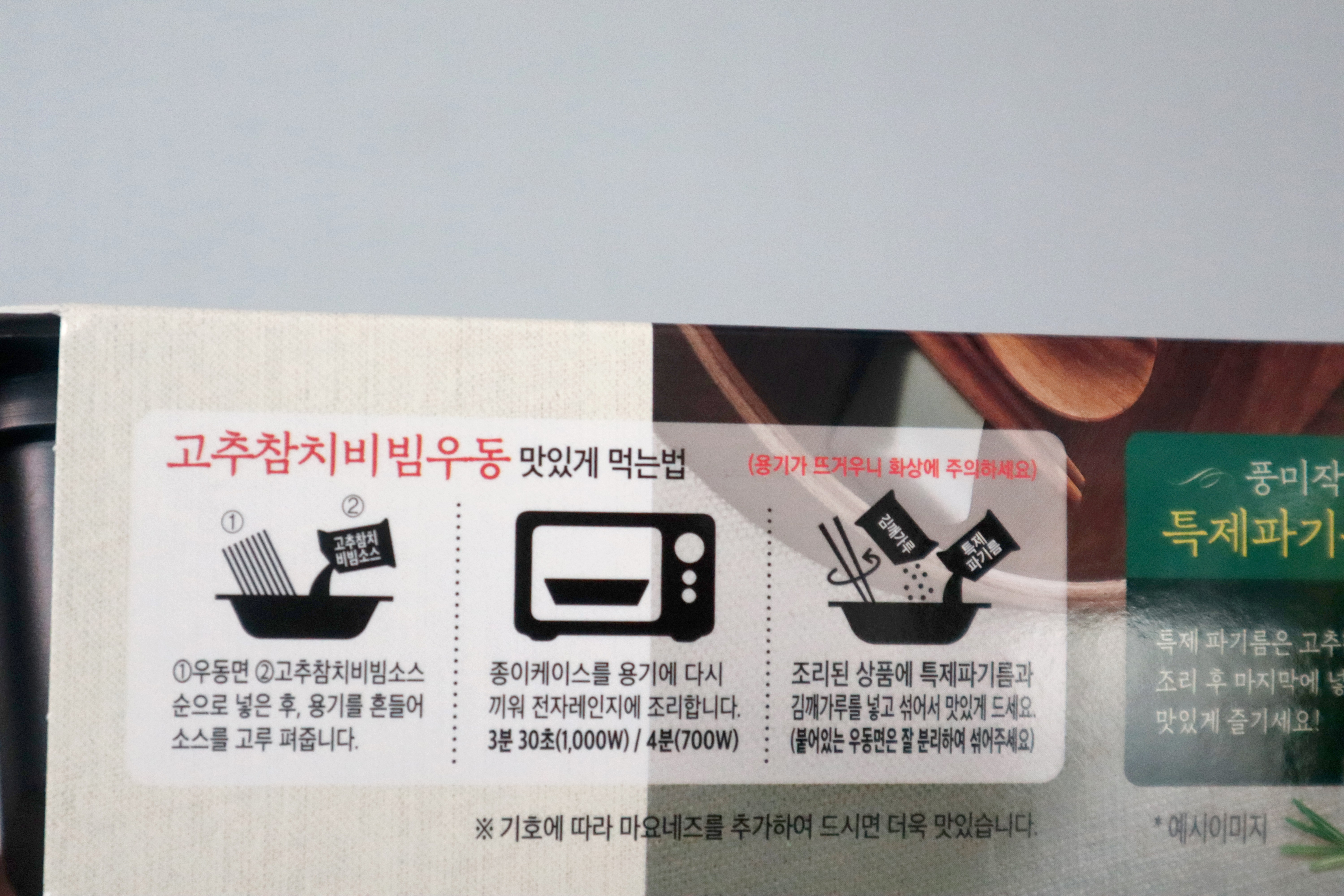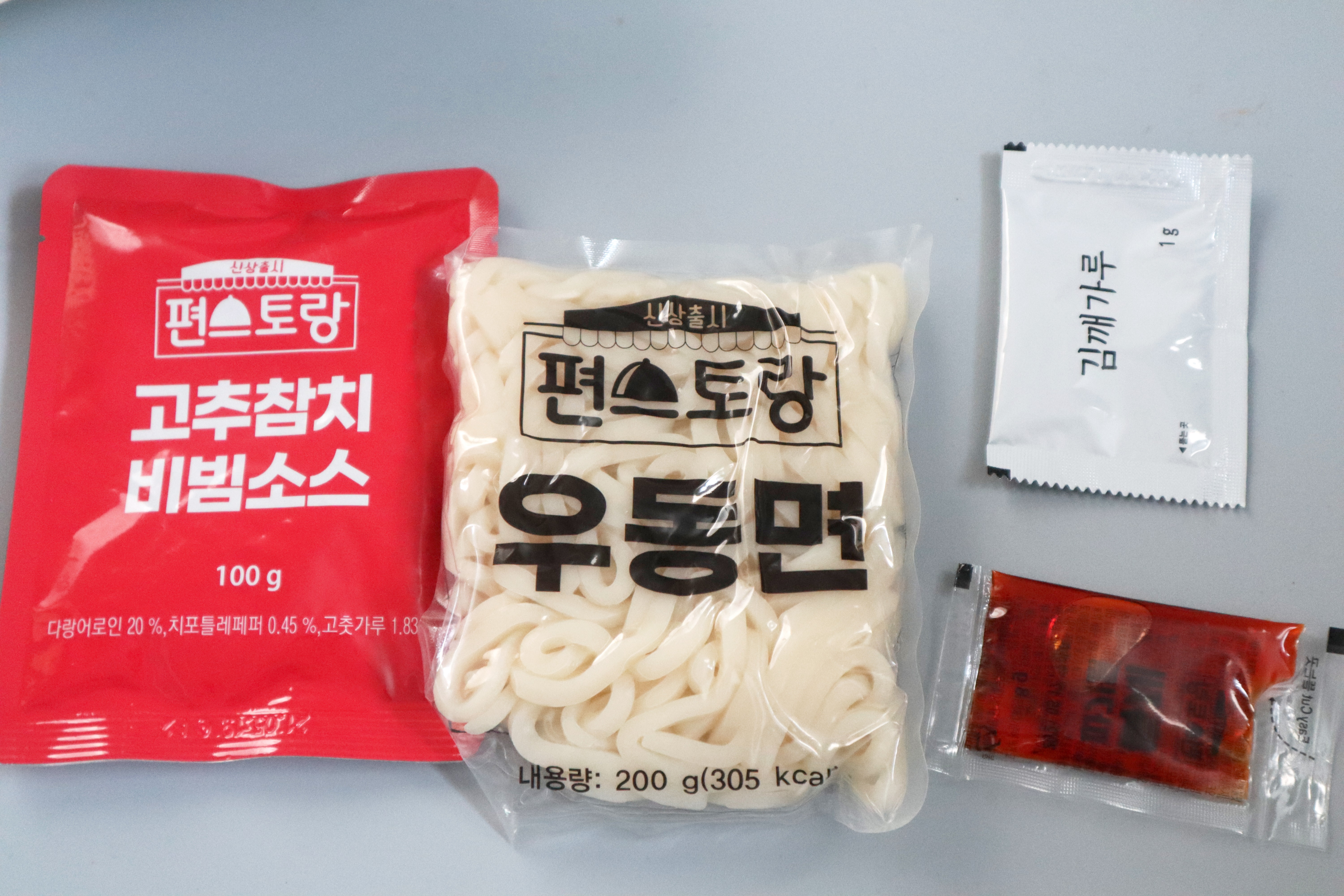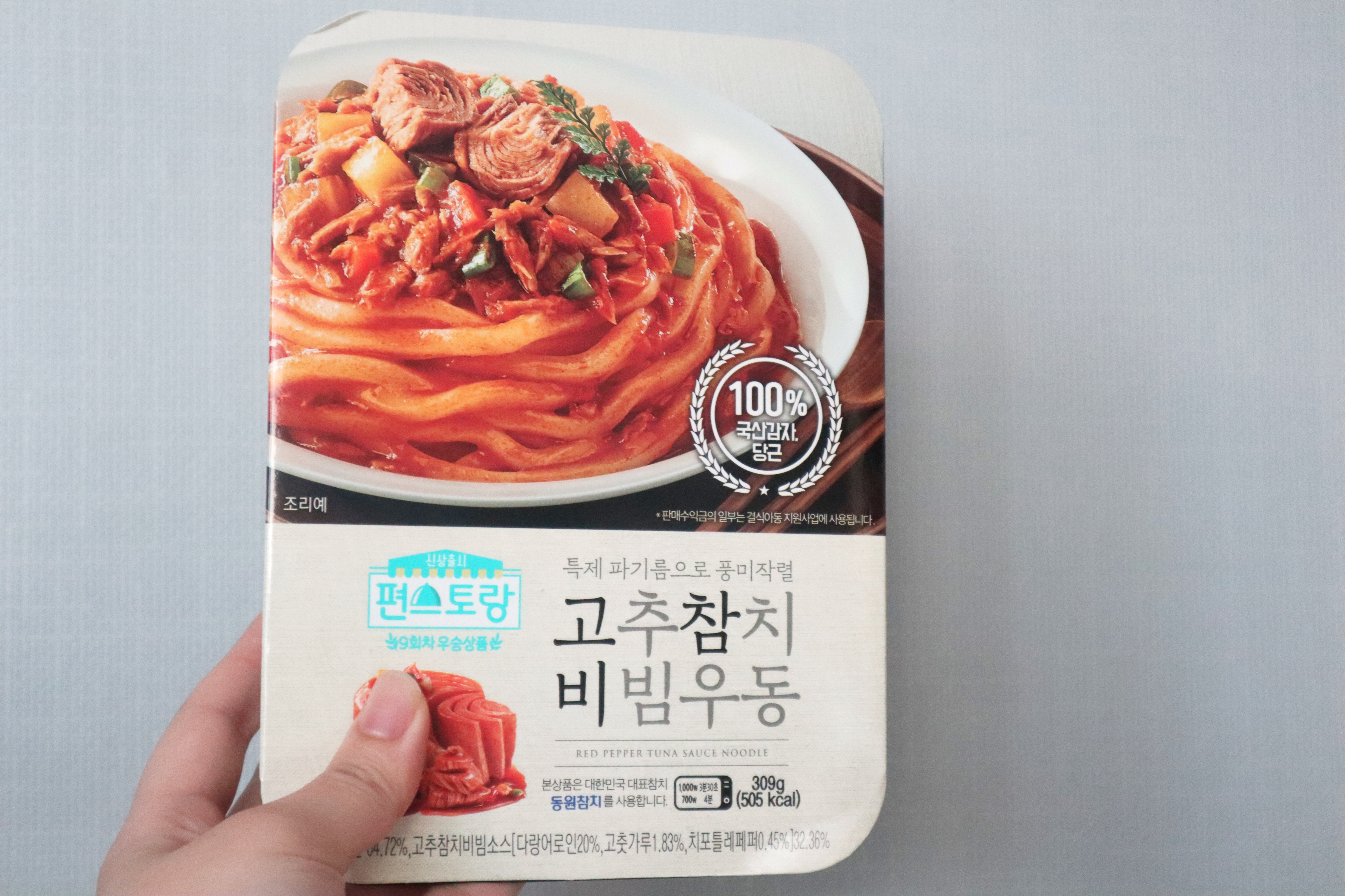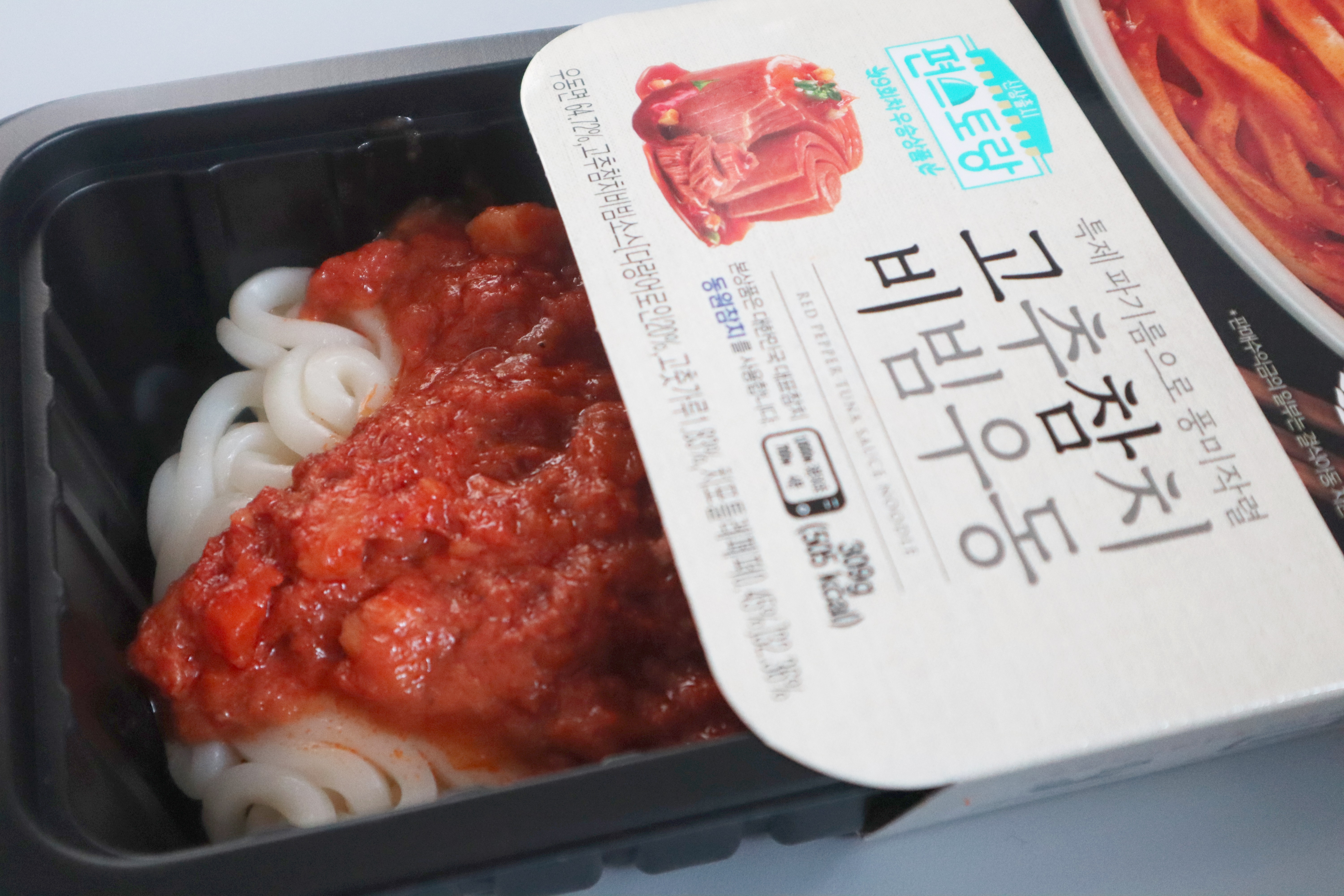 냉장고를 두리번거리던 중 편스토랑 고추참치비빔우동을 발견 .