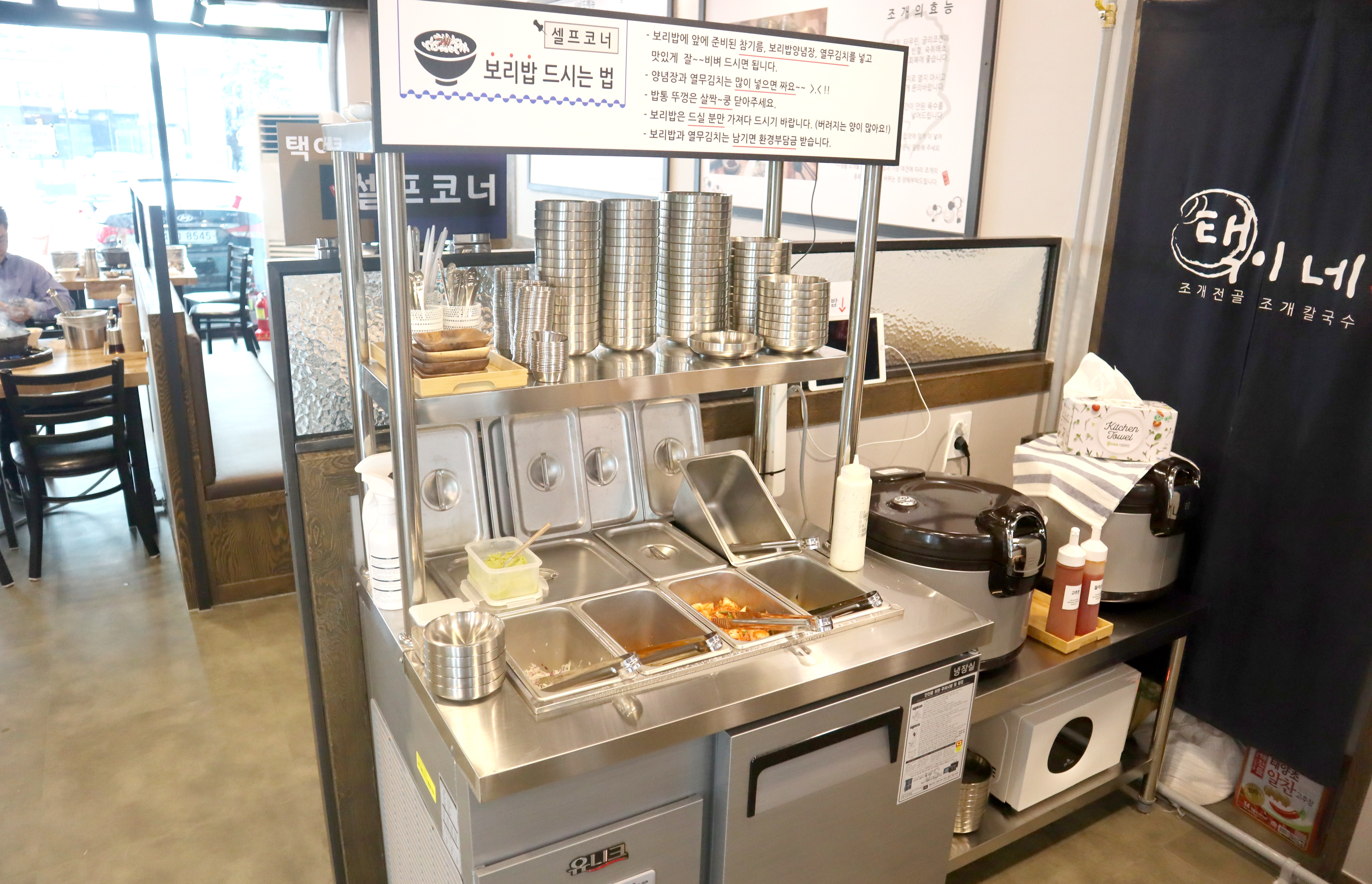 부족한 반찬과 보리밥은 매장 안쪽에 있는 셀프코너에서 드실 수 있는데요.