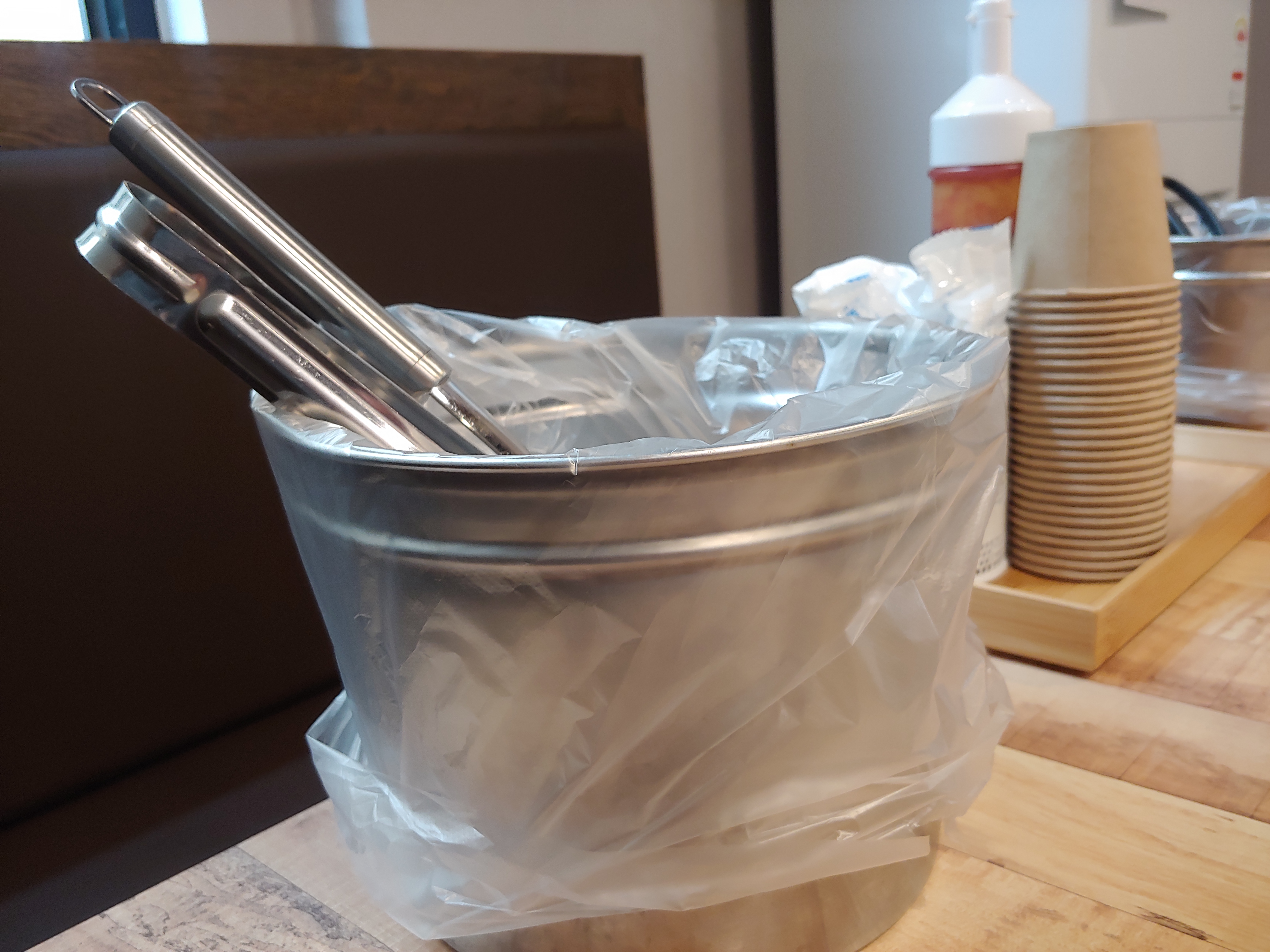 테이블에는 물티슈, 초장, 간장, 종이컵 그리고 조개껍질 담을 수 있는 용기도 다 준비되어 있었어요.