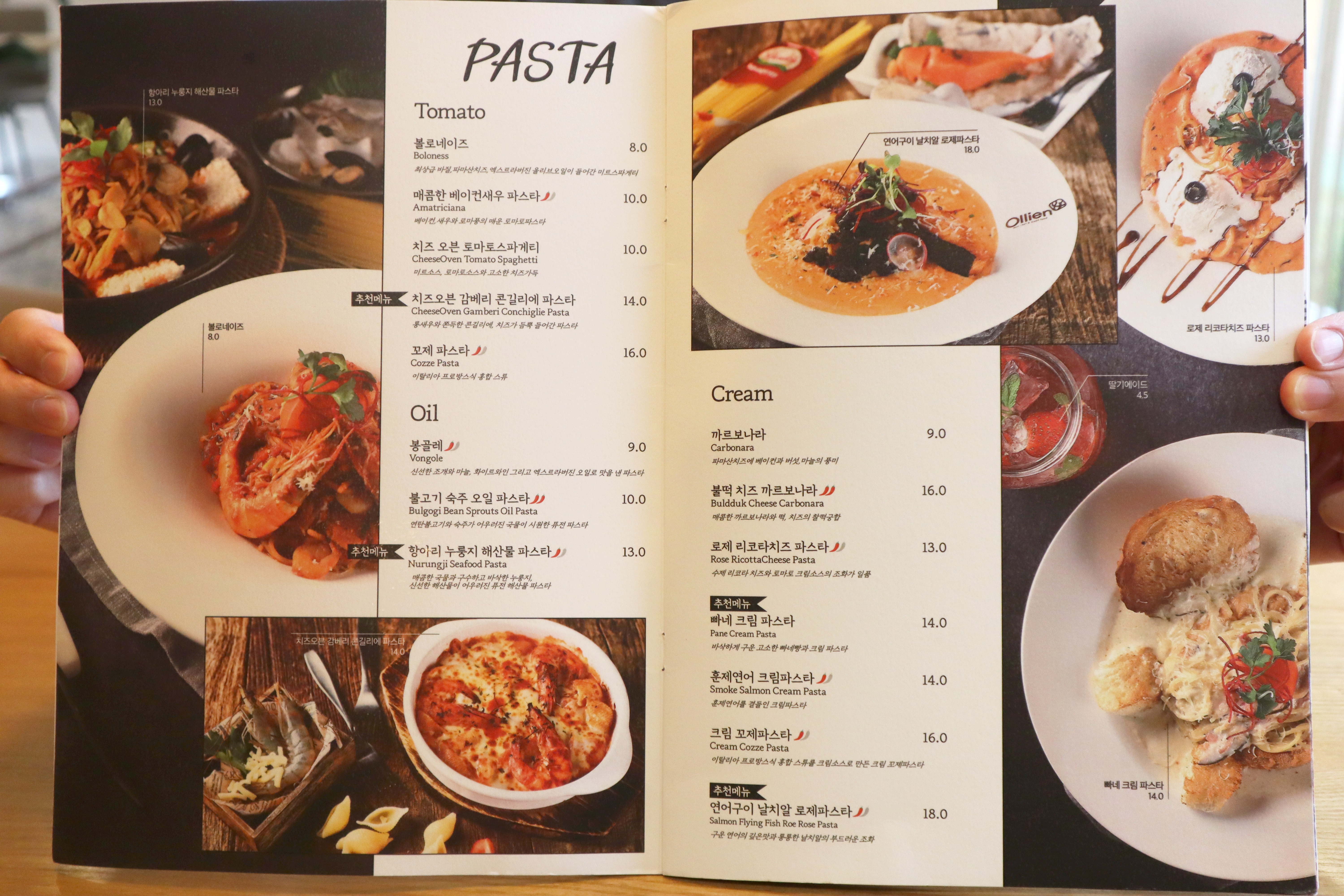 ▲ 시흥 올리앤 메뉴판 ▲