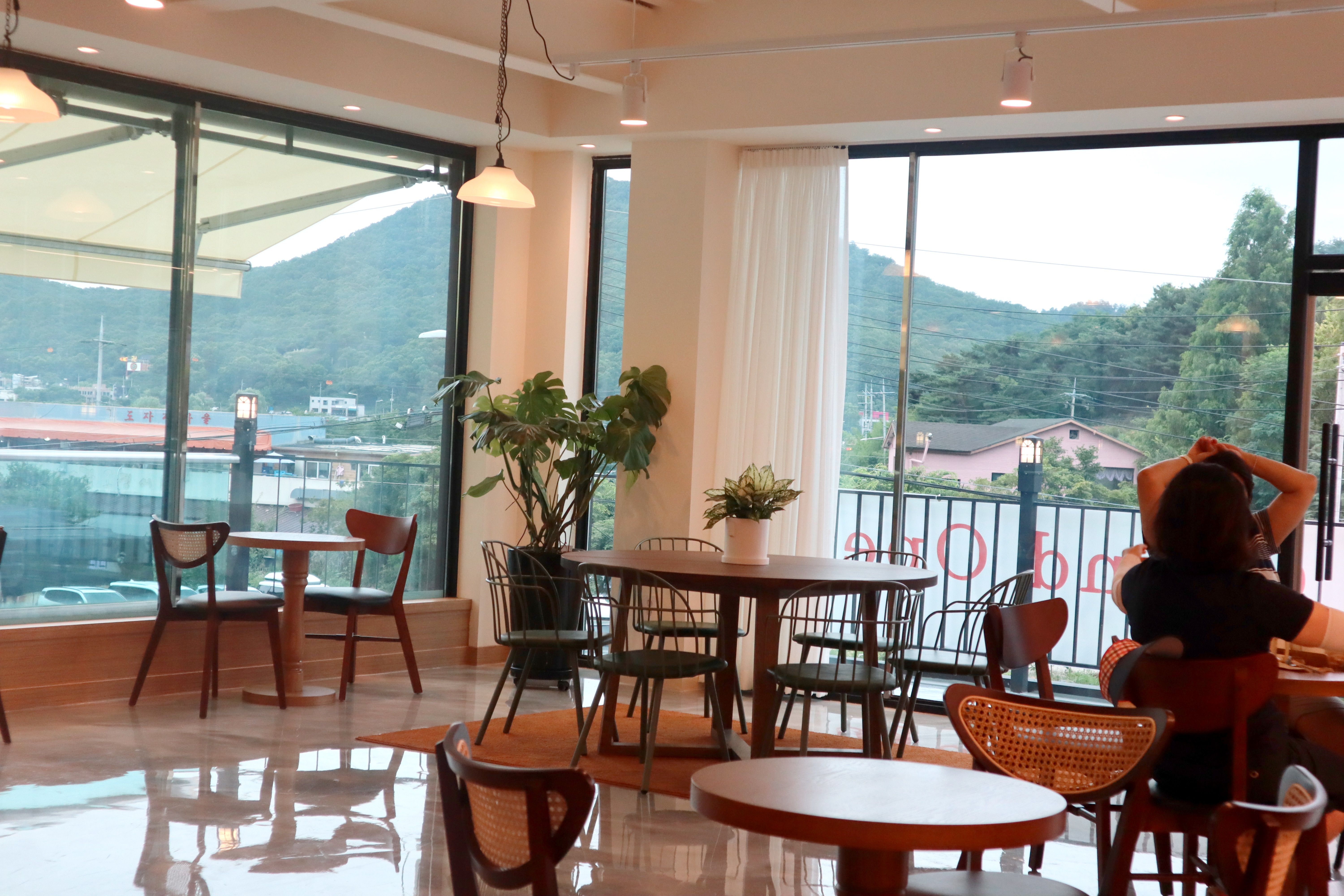 의자와 테이블이 예쁘고 편한 느낌은 아니지만 조용한 분위기에서 경치를 감상할 수 있는 곳이라고 할 수 있어요.