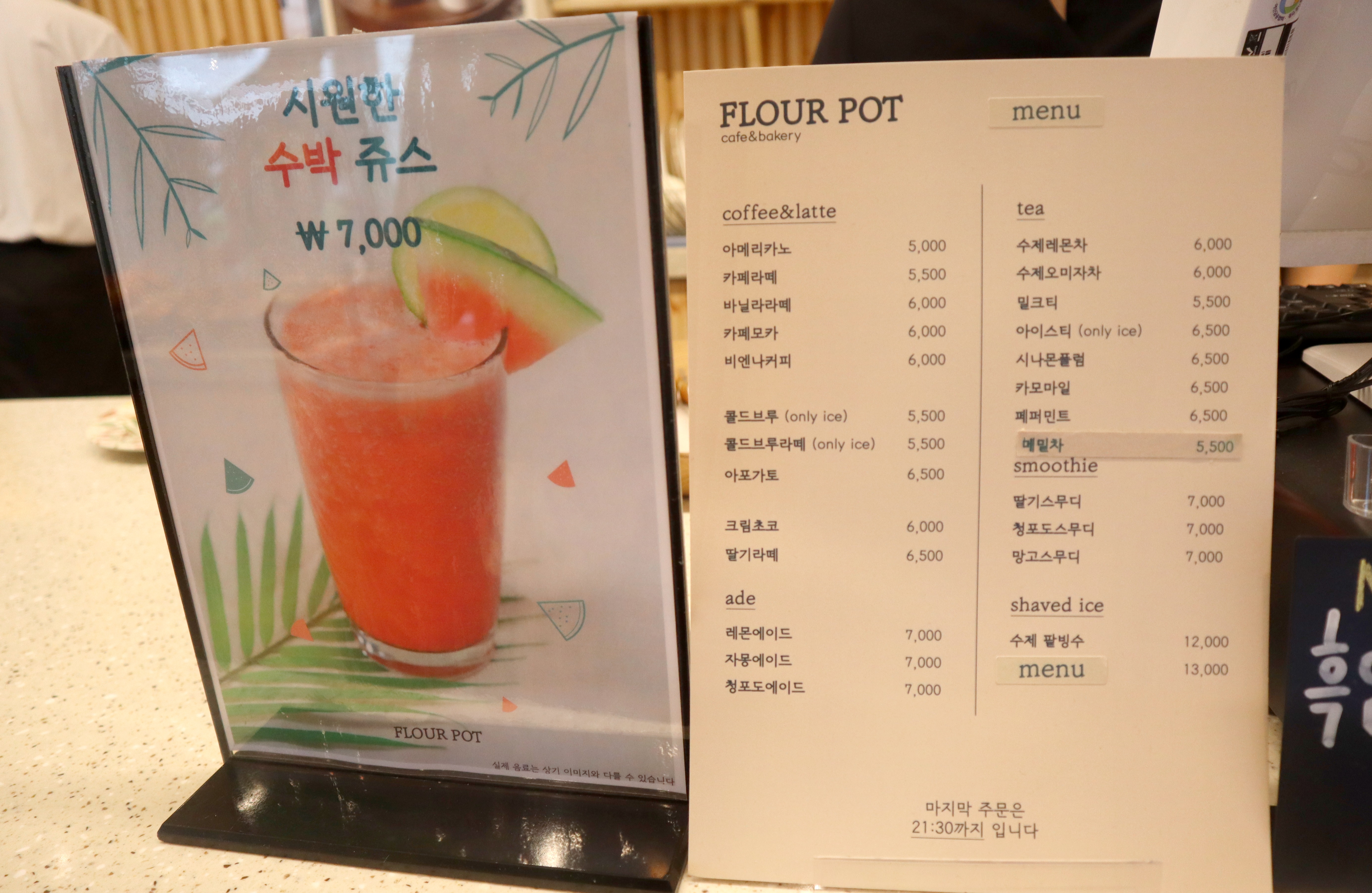 여름 시즌메뉴로 시원한 수박쥬스가 나왔어요.