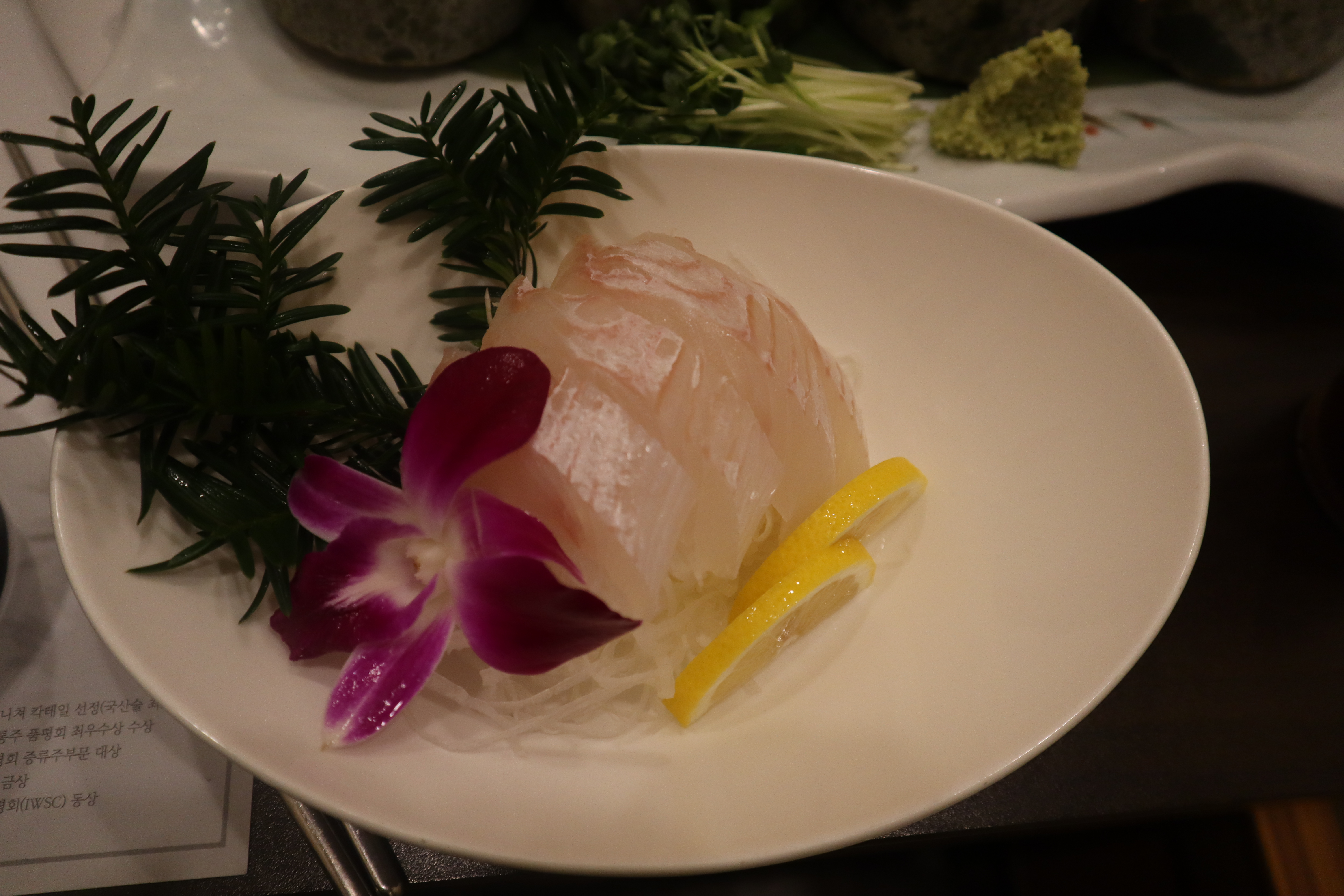 일본식 숙성법을 거쳐 쫀득한 식감이 매력적이라는 사시미에요.