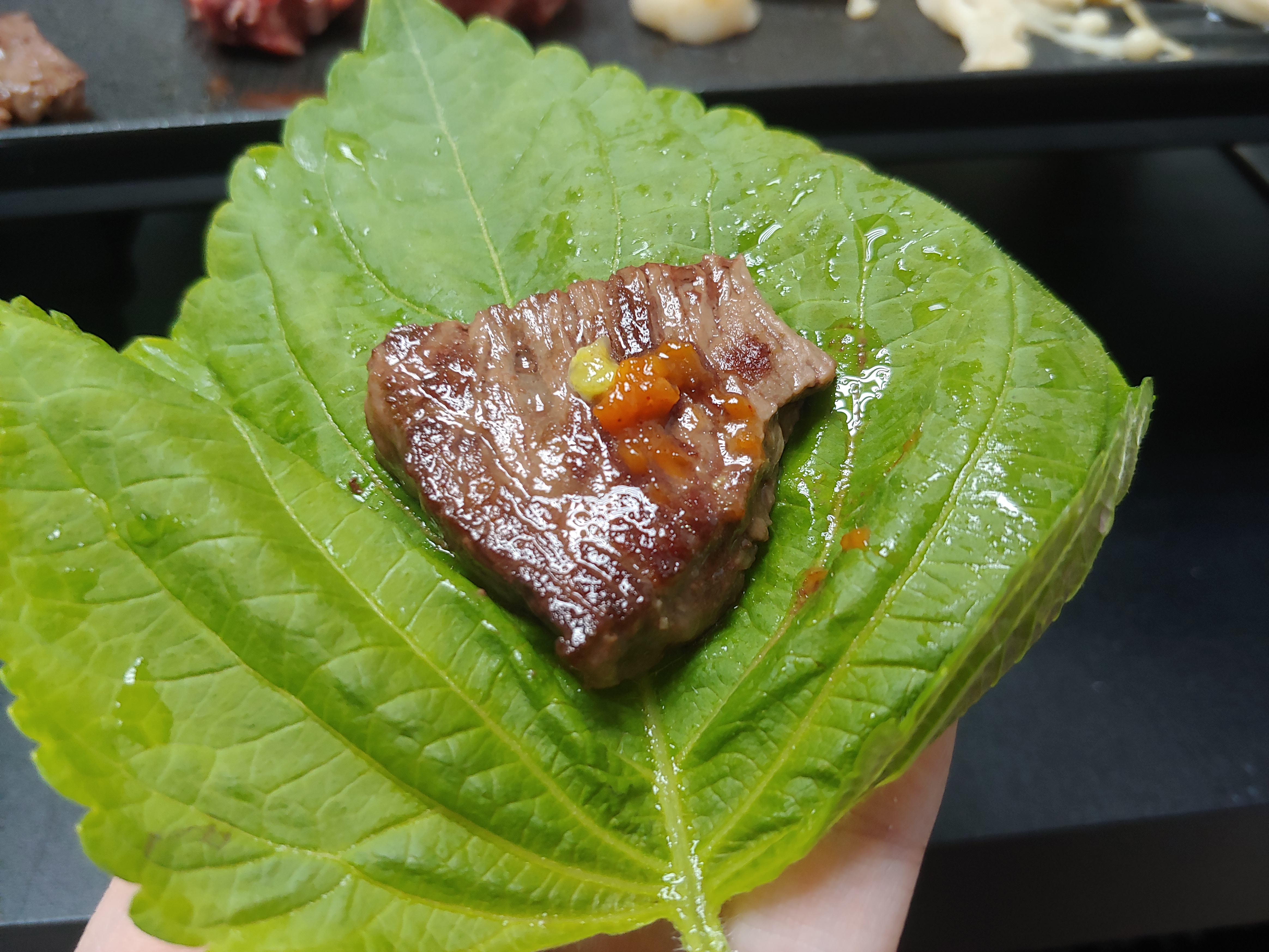 쌈장을 올려 깻잎에도 싸먹으니까 진심 맛있었음.