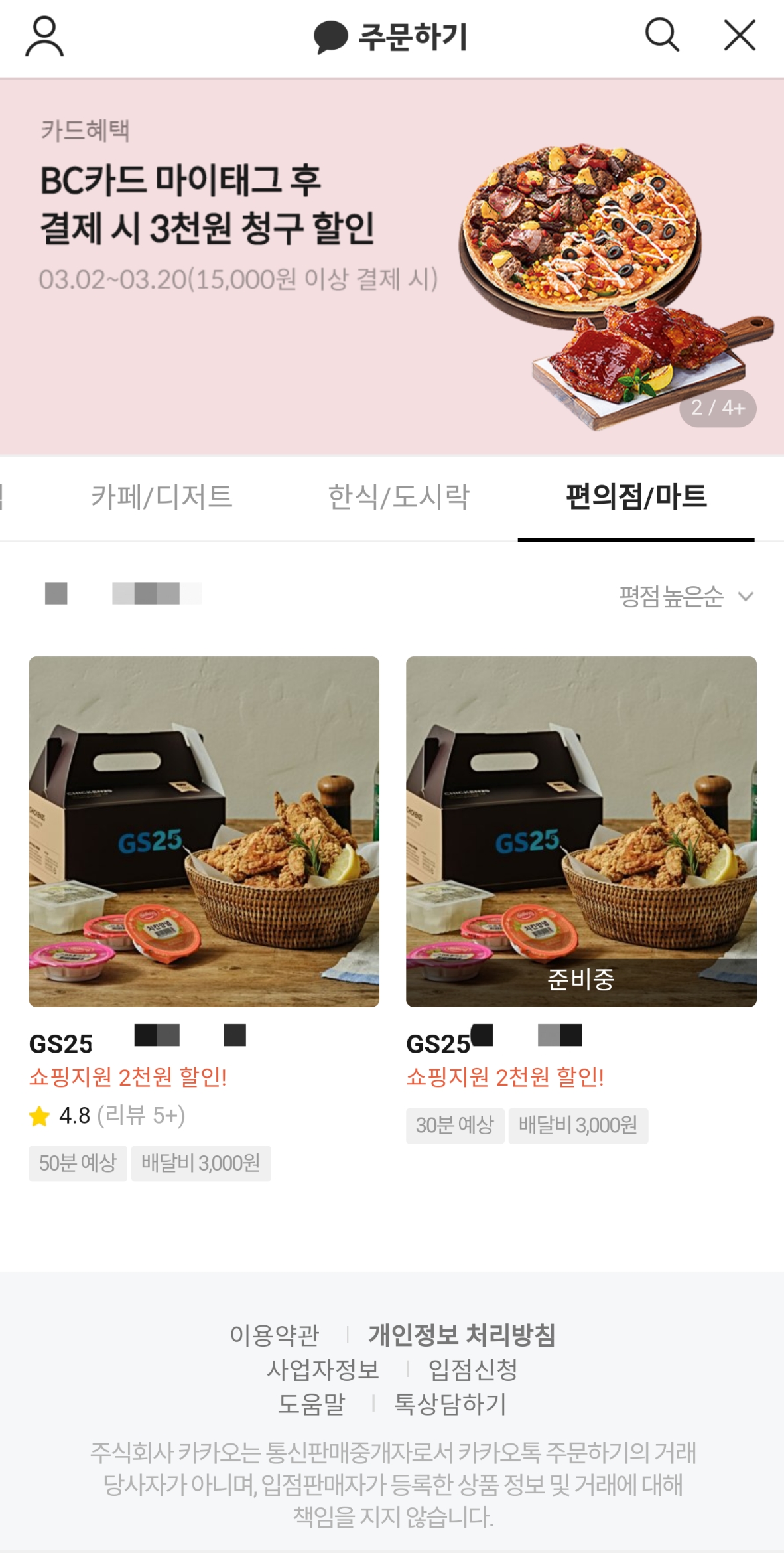 3/15까지 카카오톡 배달 이벤트 진행중이라 카카오배달로 주문을 하면